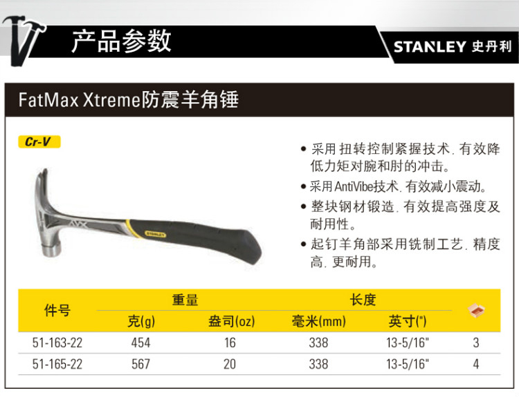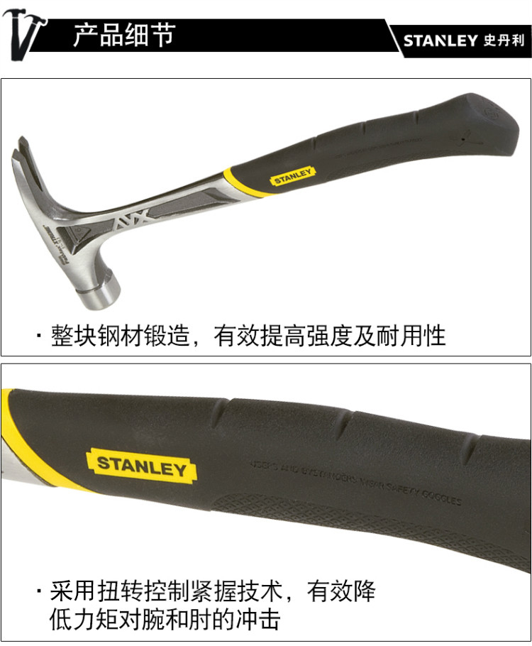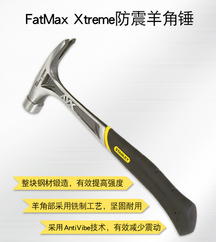 史丹利STANLEY Fatmax XTREmE防震羊角锤20oz 起钉铁锤子工具家用木工装修锤榔头锤拔钉 51-165-22
