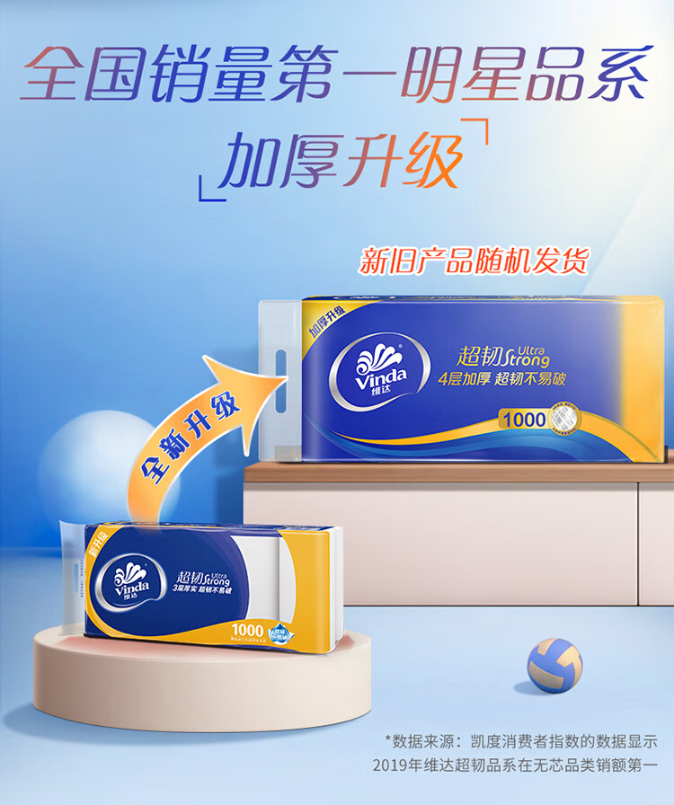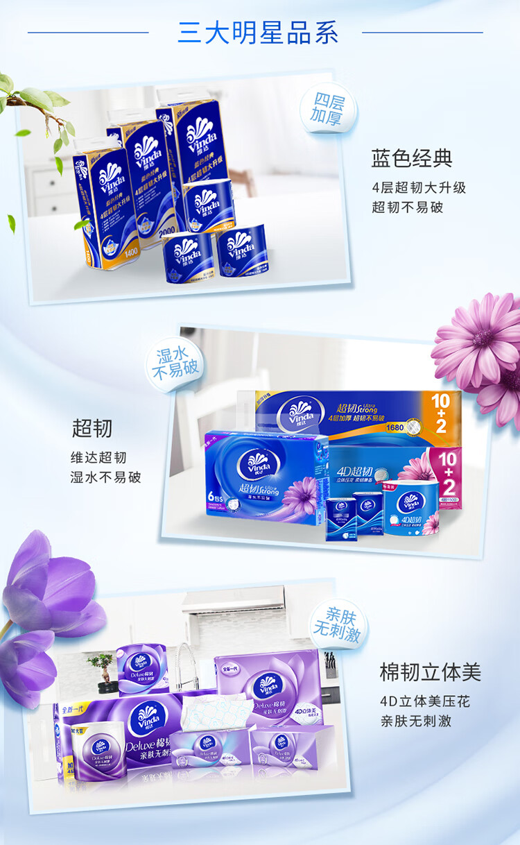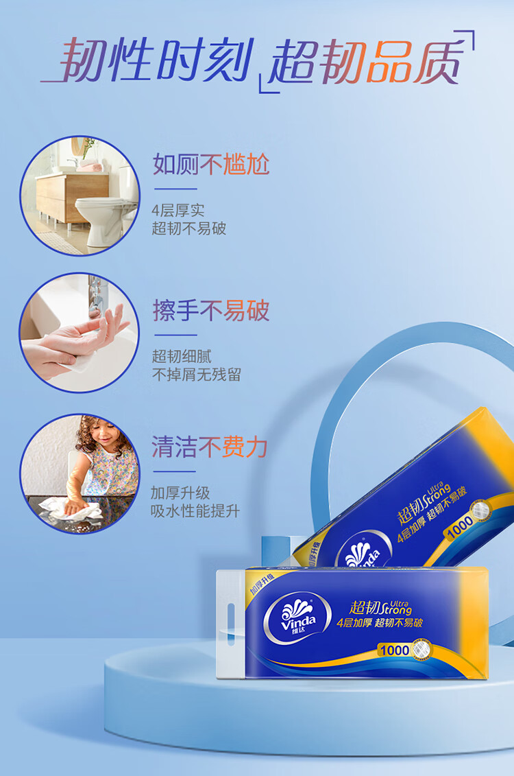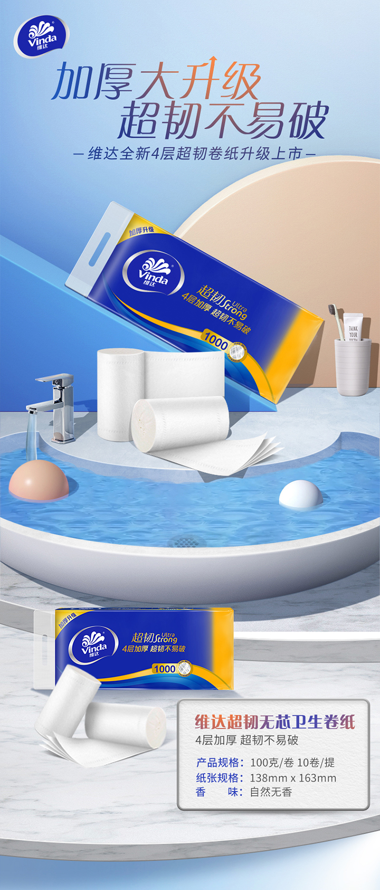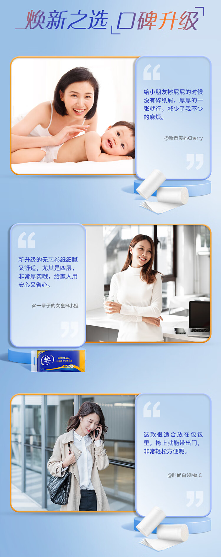 维达(Vinda) 无芯卷纸 超韧4层100g卫生纸*10卷*12提 母婴可用