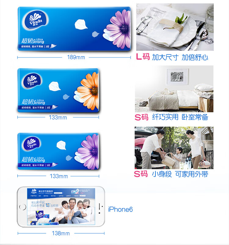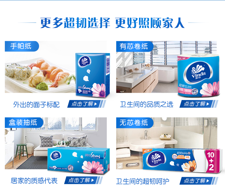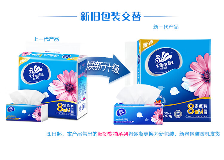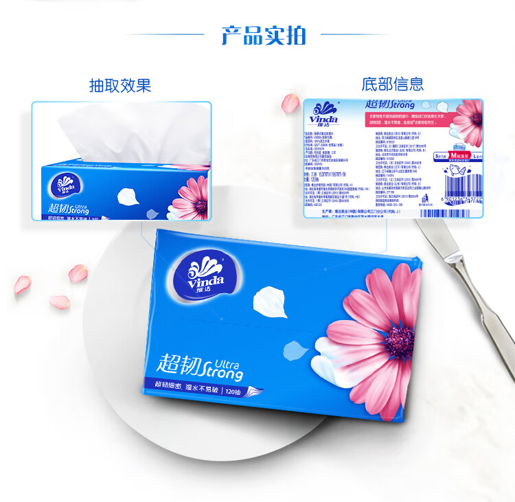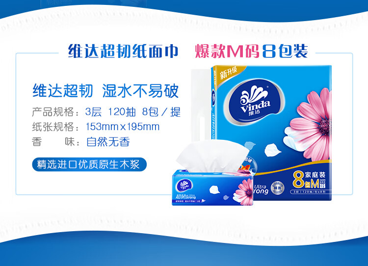 维达(Vinda) 抽纸 超韧系列软抽3层120抽*8包(认准真M码)单位:提