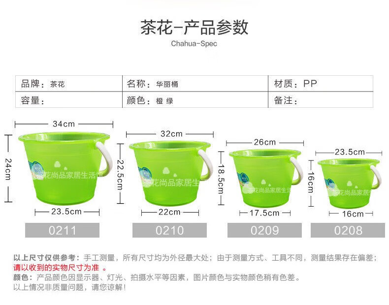 茶花(CHAHUA)茶花水桶小号塑料桶手提桶 13L-【0211绿色1个】3个起订