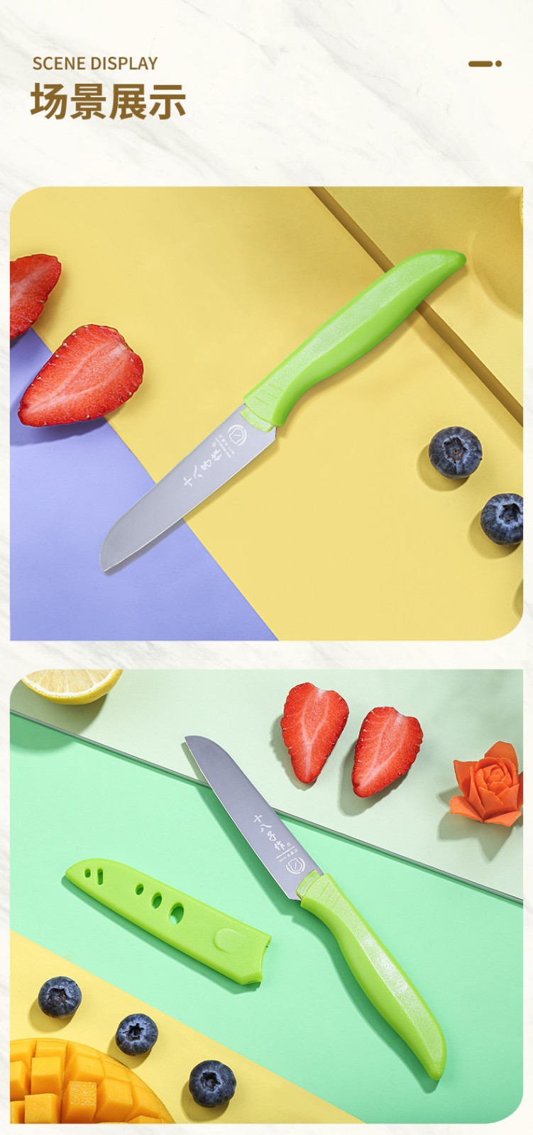 十八子作 家用轻便易携带不锈钢水果刀H300(含防护套) 单位:把
