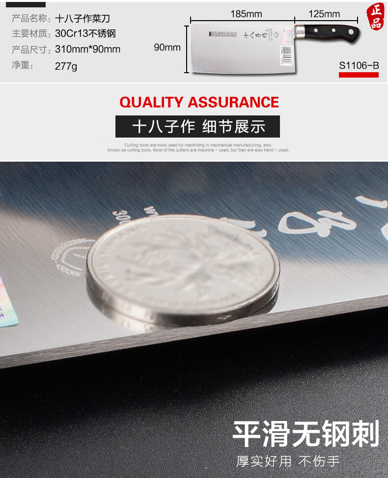 十八子作 菜刀不锈钢切片刀厨房家用切菜刀厨刀切肉刀具