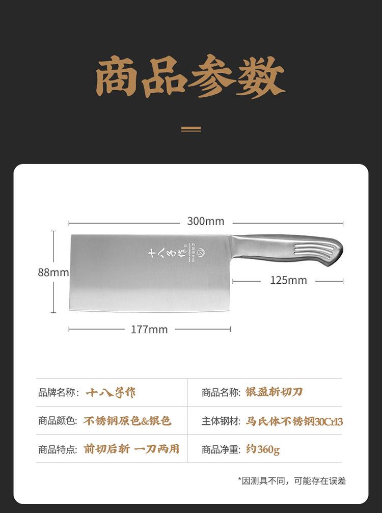 十八子作刀具 厨房家用不锈钢菜刀斩骨切菜银盈斩切刀S2504-A 单位:把