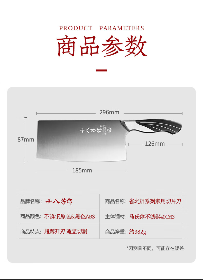 十八子作刀具 不锈钢厨房家用菜刀切肉雀之屏切片刀S2601-B