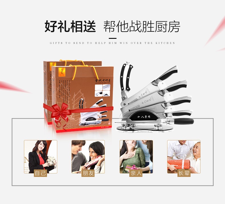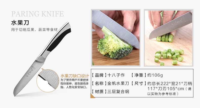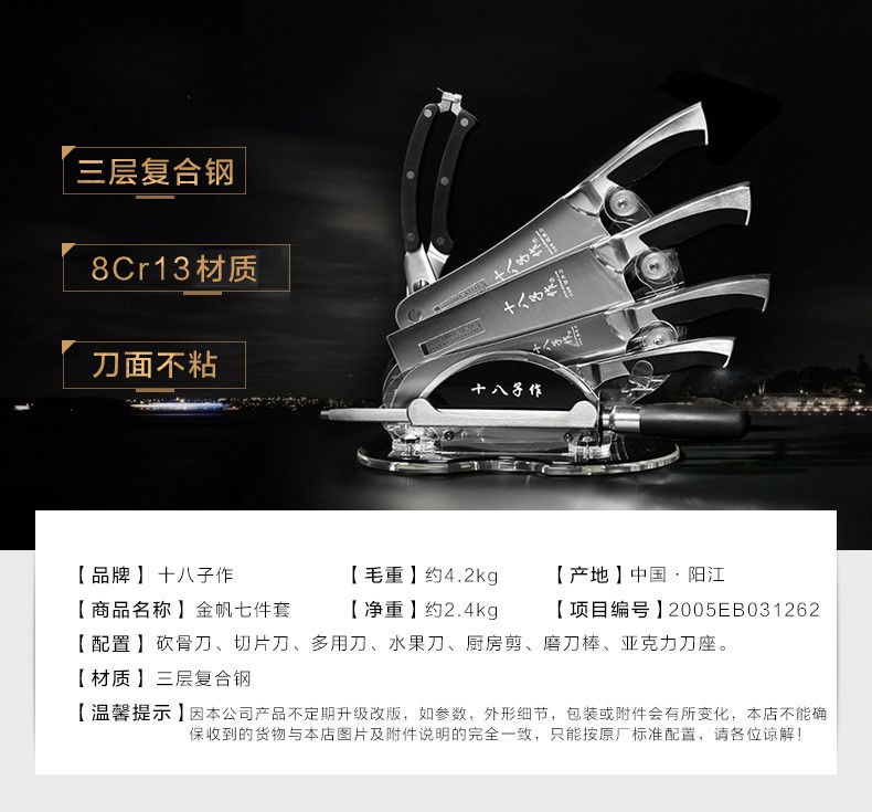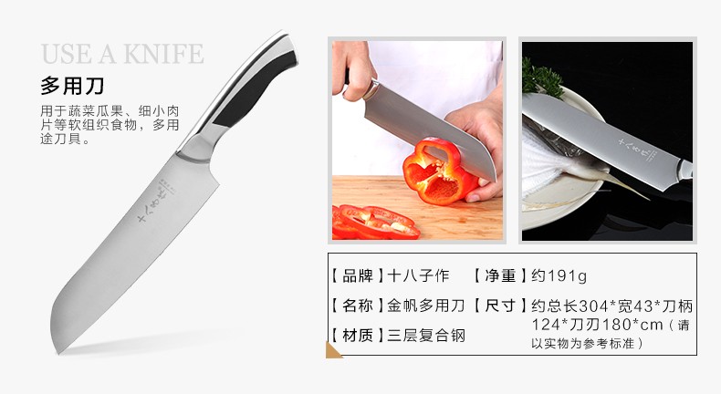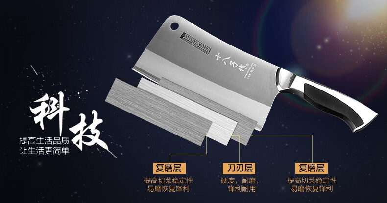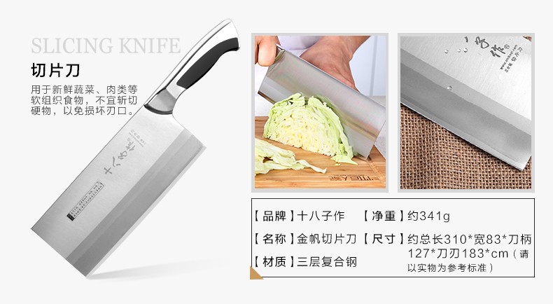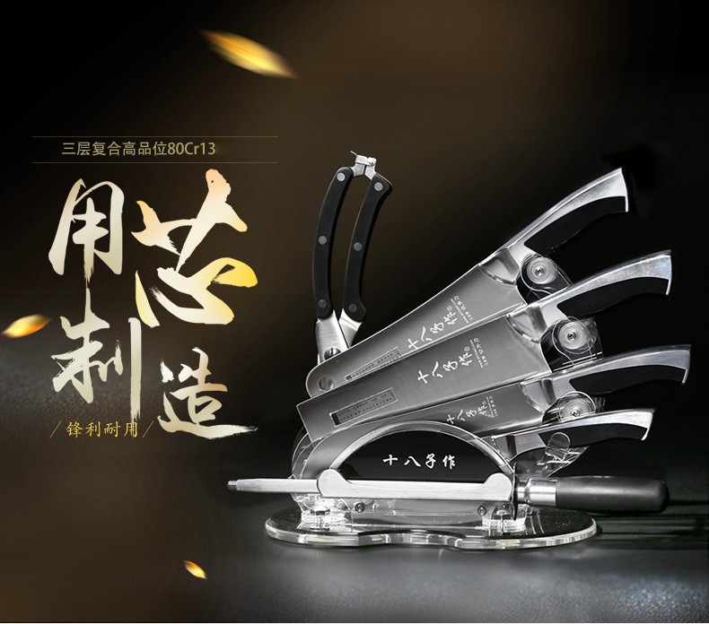 十八子作 刀具套装 高品质三层复合钢厨房刀具阳江十八子菜刀套装G2001