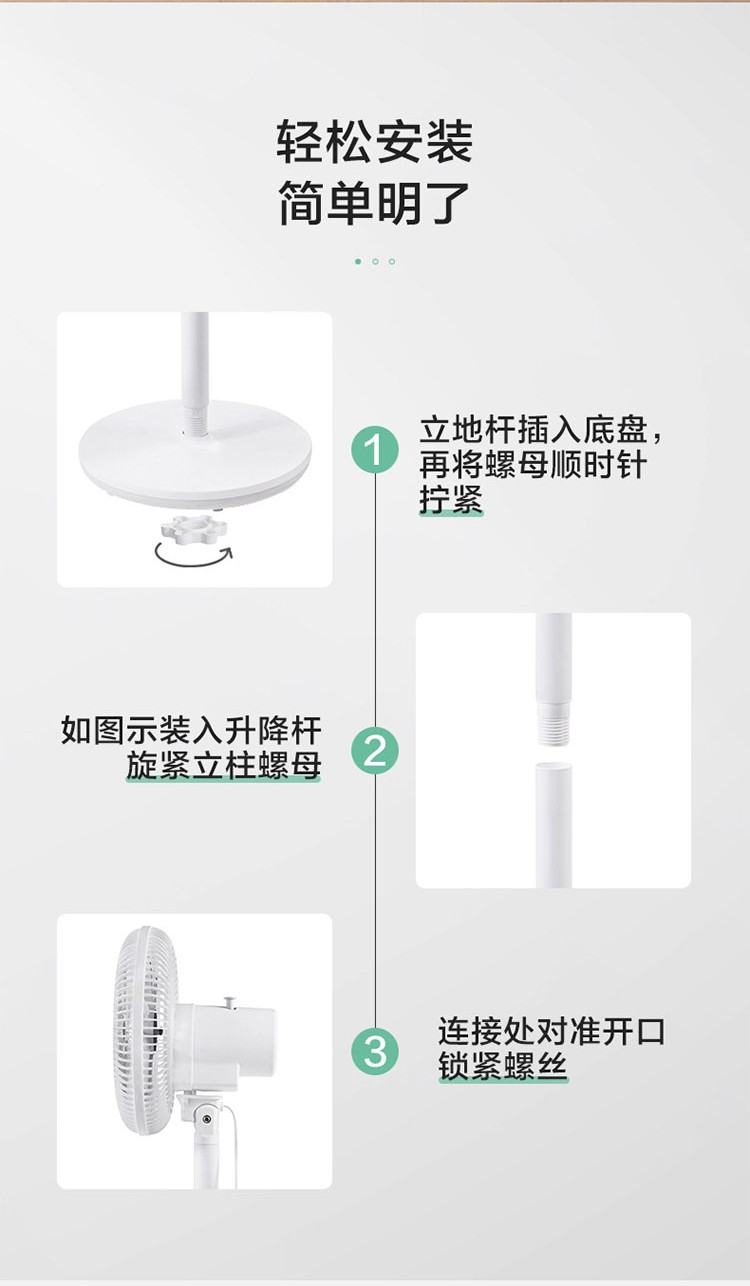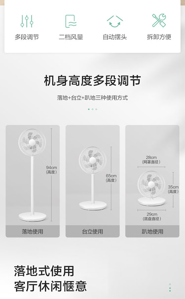 艾美特 台立扇家用电风扇落地扇6叶可升降节能 LPF06