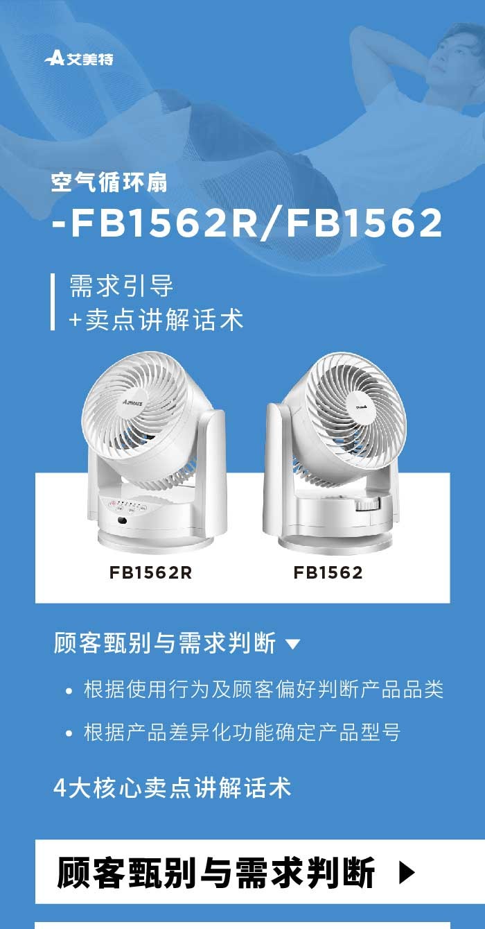 艾美特 机械/遥控台式循环扇FB1562 机械款
