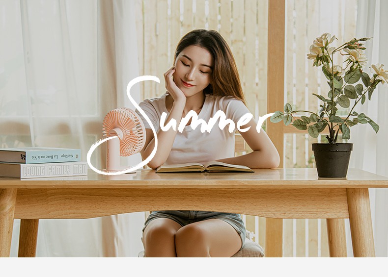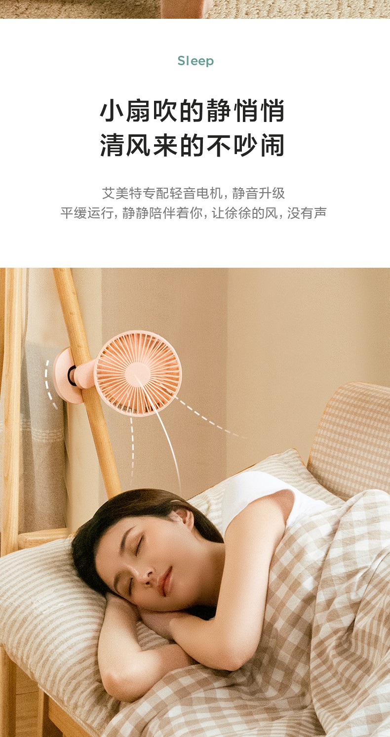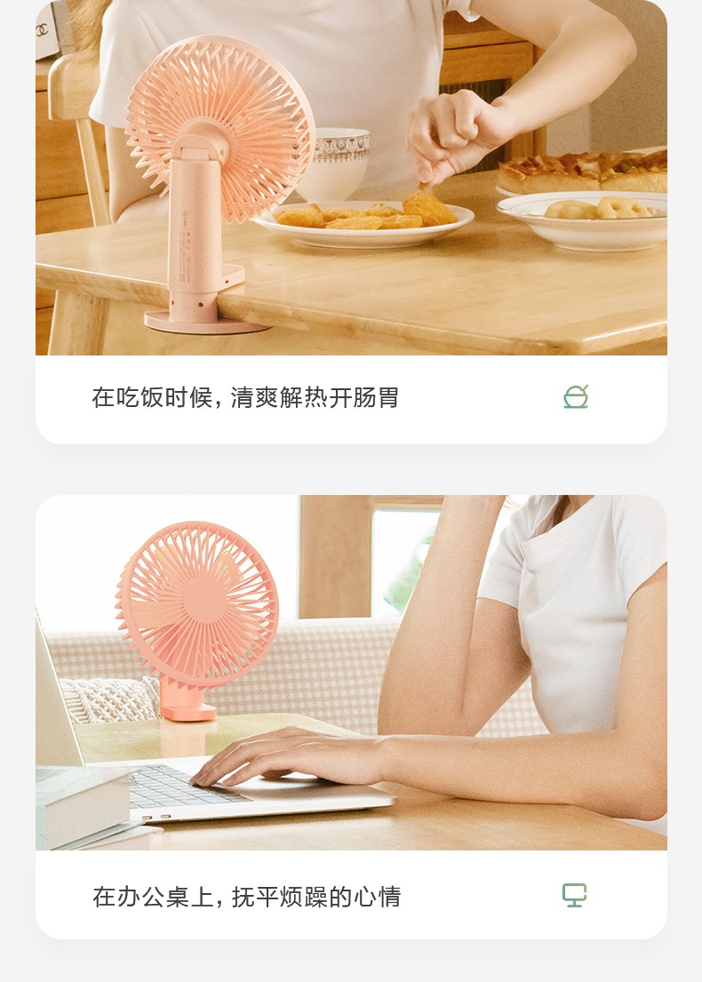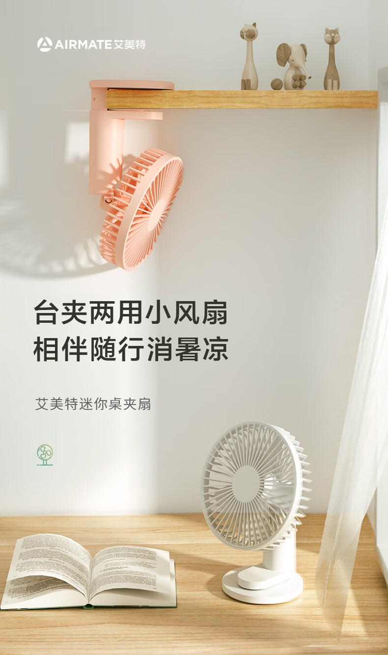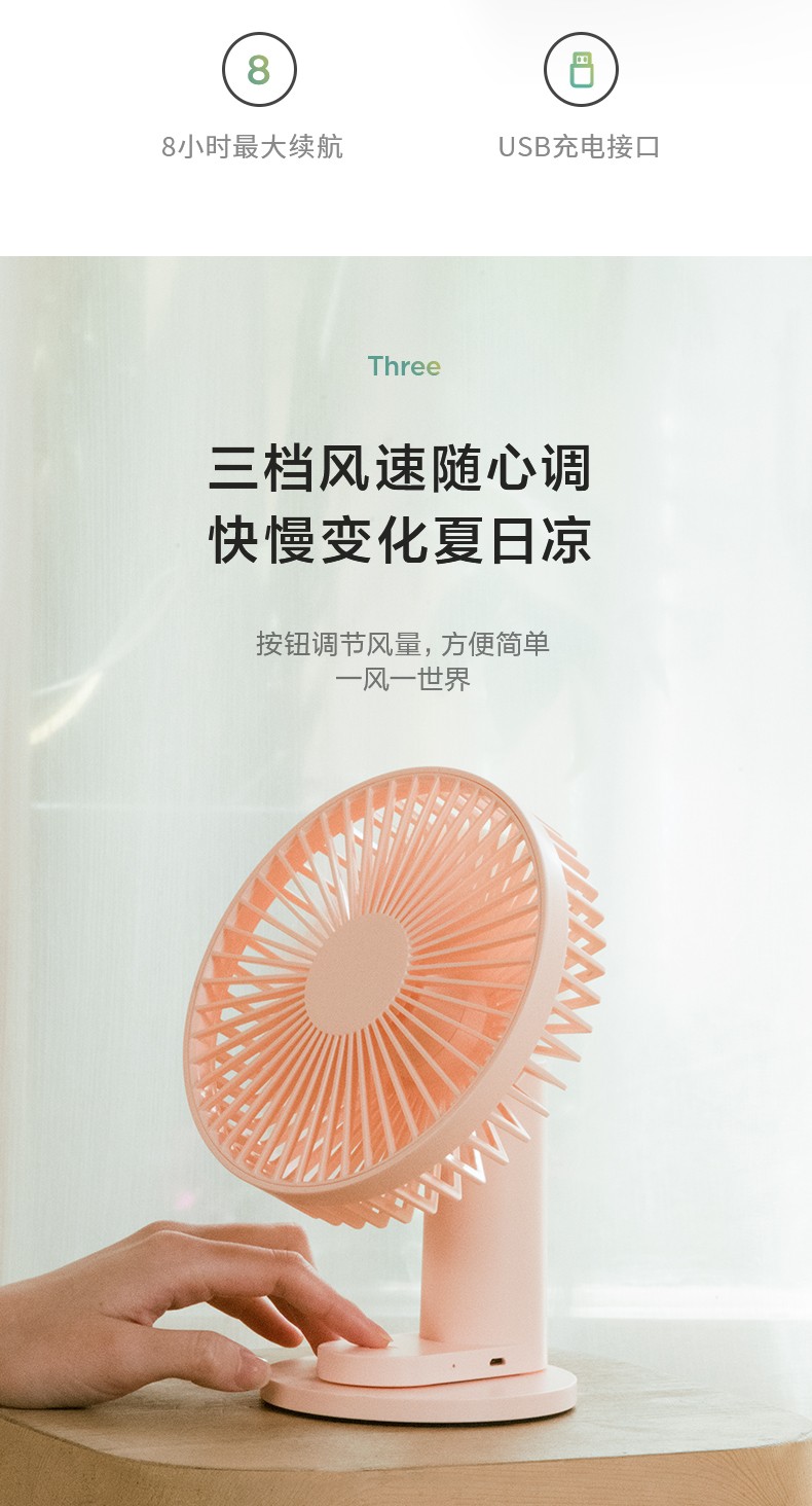 艾美特 风扇usb充电小风扇桌面风扇便携式迷你电风扇小型低噪学生办公桌风扇 AH10 粉色