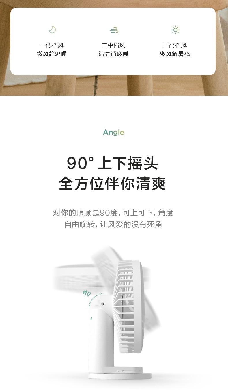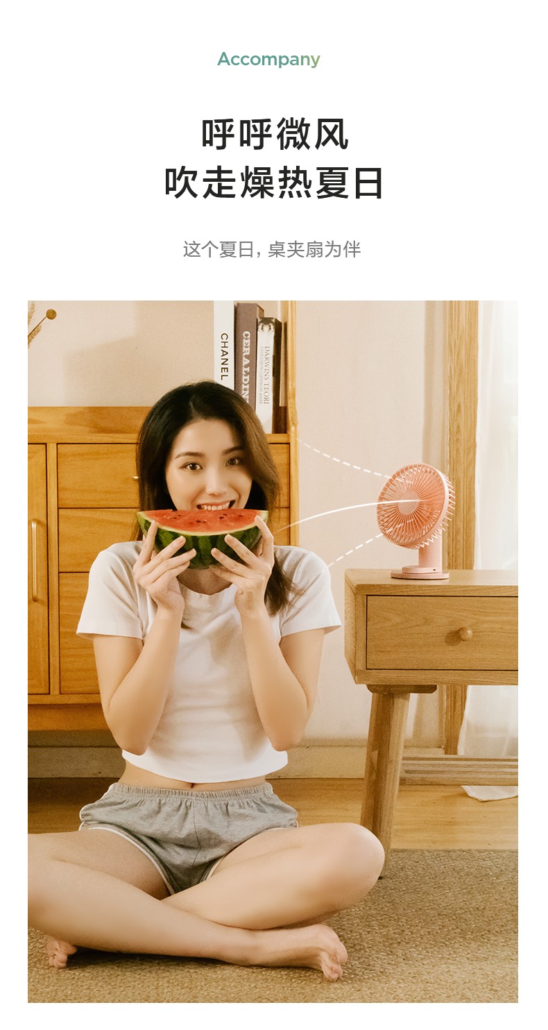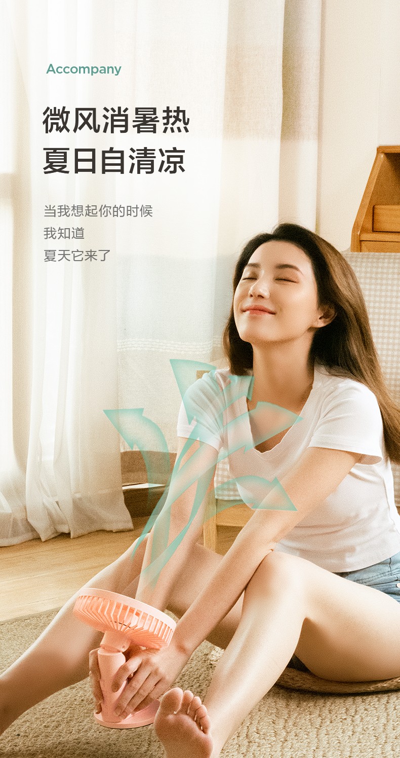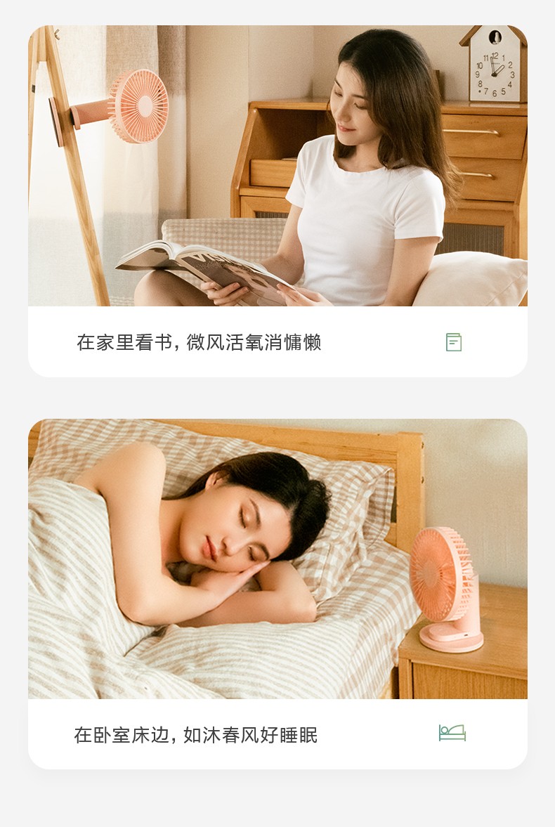 艾美特 风扇usb充电小风扇桌面风扇便携式迷你电风扇小型低噪学生办公桌风扇 AH10 粉色