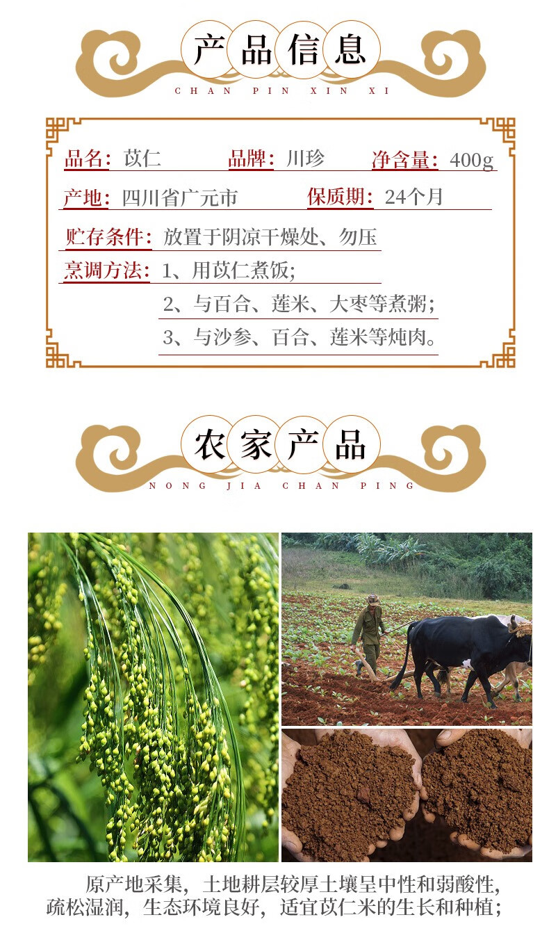 川珍 苡仁薏苡仁五谷杂粮薏仁米薏米仁薏仁粥米伴侣 苡仁400克袋装