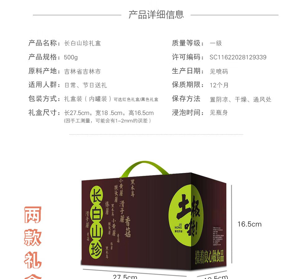 梅河口馆 土极啦东北山珍菌菇礼盒500g盒 6款菌菇 福利礼品礼盒装 红盒装 500g/盒