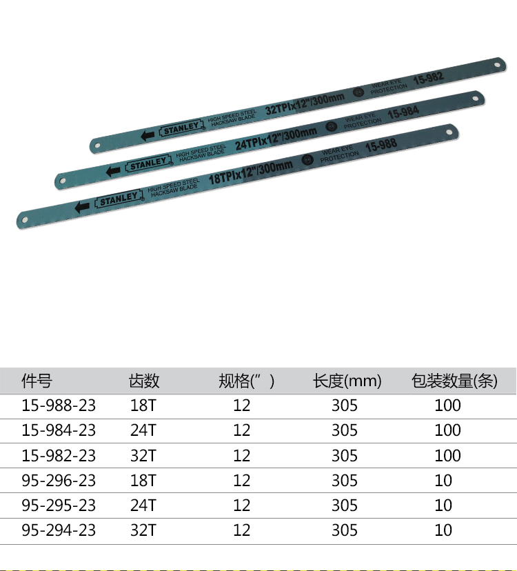 史丹利(STANLEY)24齿高速钢锯条金属锯条12英寸/100根装 15-984-23