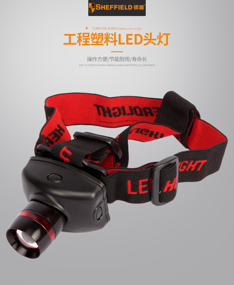 钢盾 SHEFFIELD S030012 三档调光露营狩猎LED头灯头戴式高亮度3W LED头灯 单位:个