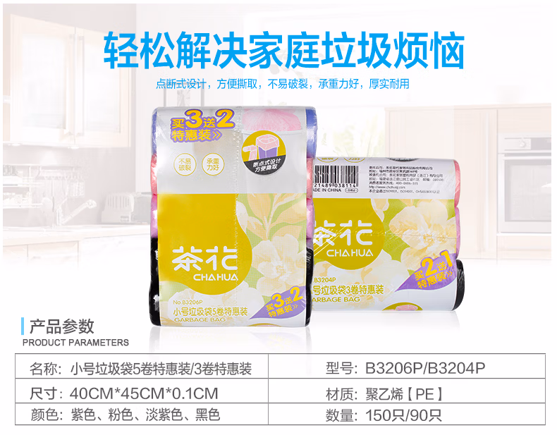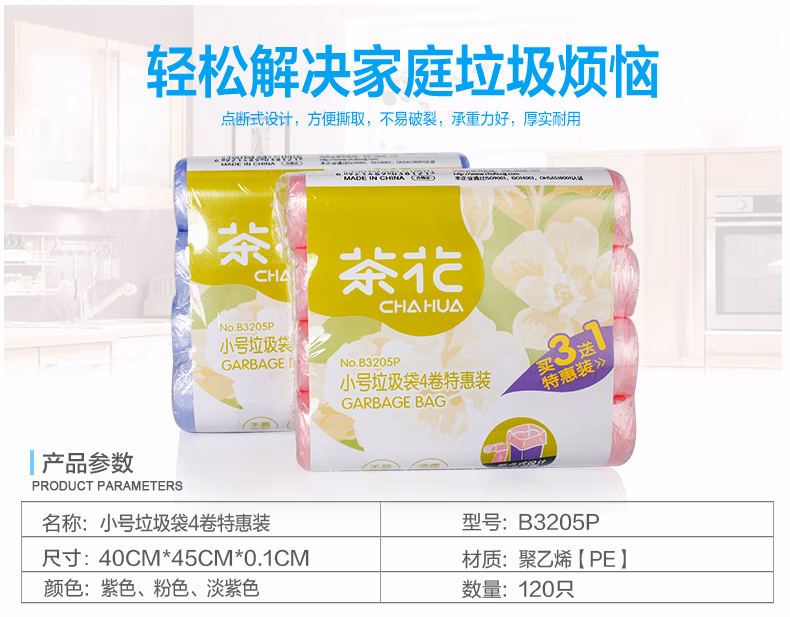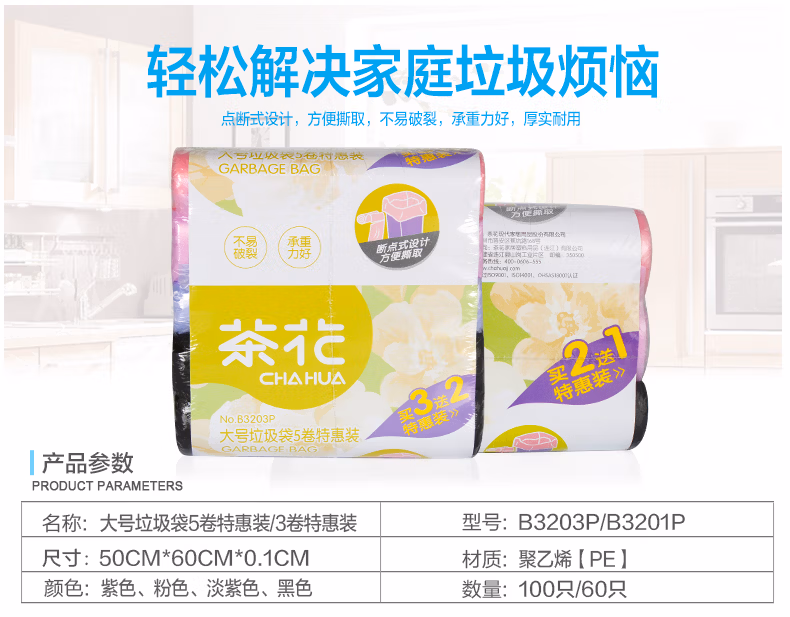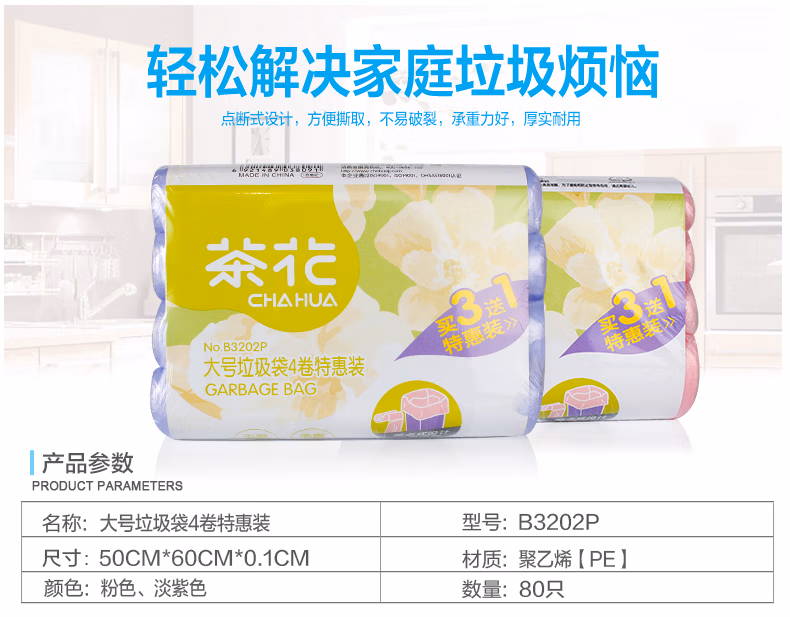 茶花 大号垃圾袋3卷特惠装B3201P*2