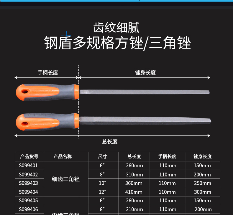 钢盾 SHEFFIELD S099409 粗齿三角锉6英寸 三角锉刀钢锉金属平板挫刀工具矬刀
