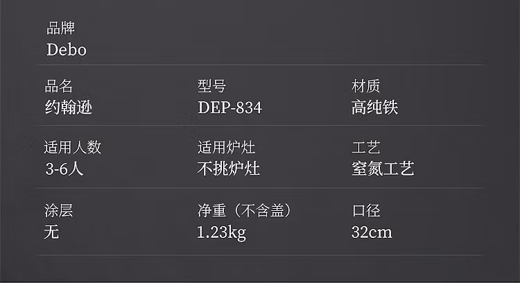 德铂 约翰逊炒锅 DEP-834 单位:套