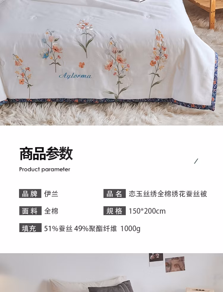 伊兰(YILAN)恋玉丝绣全棉绣花蚕丝被YL-2238