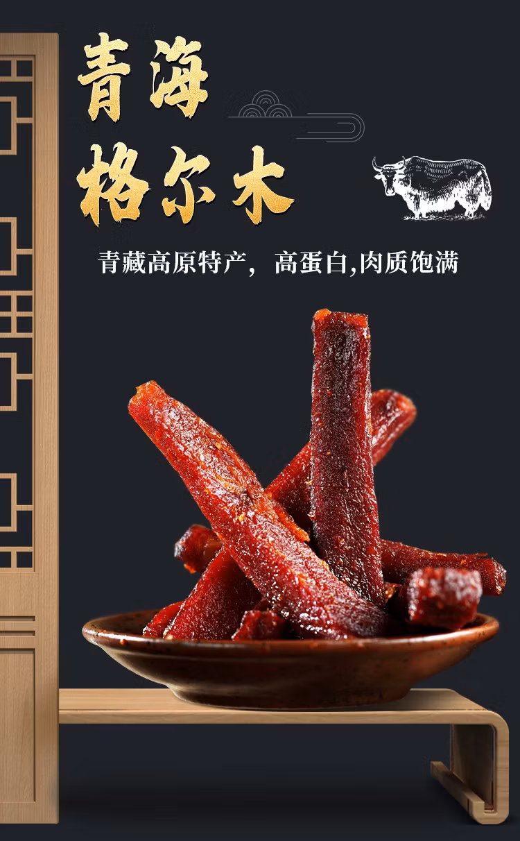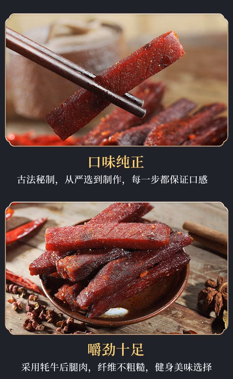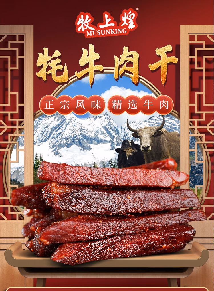 牧上煌 手撕牦牛肉干(七成干条形)250g