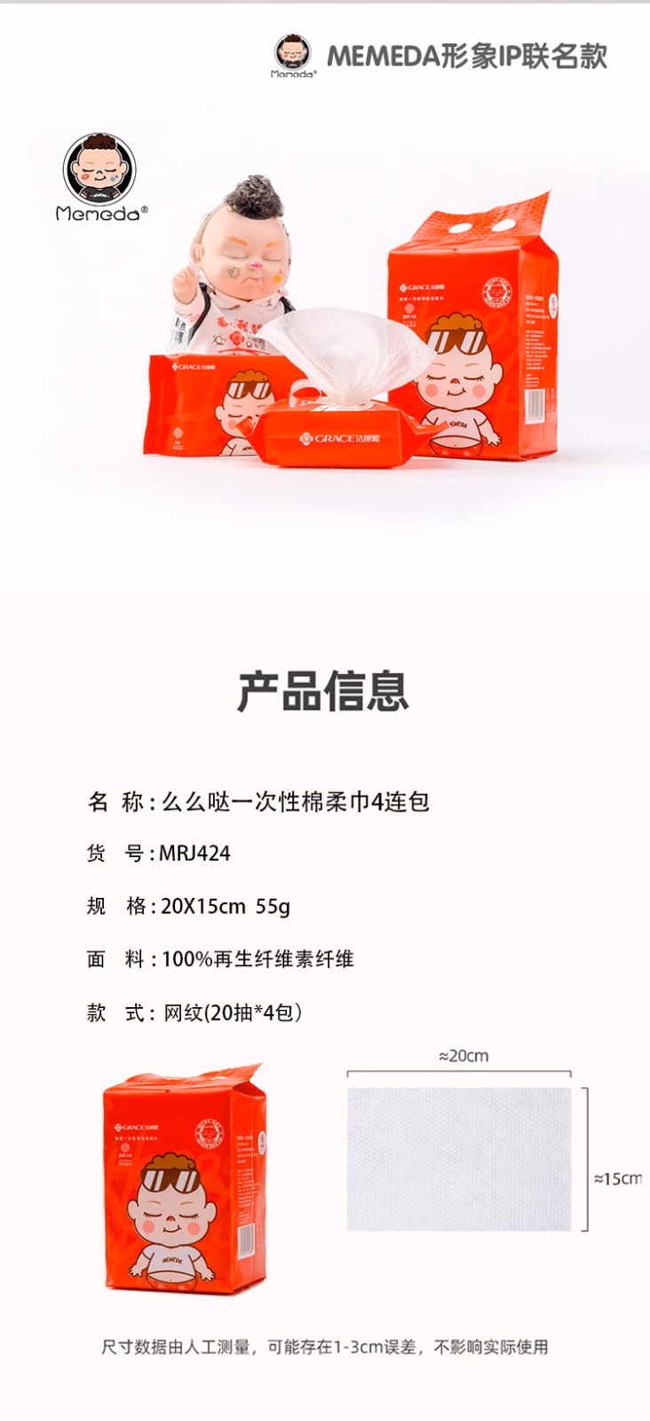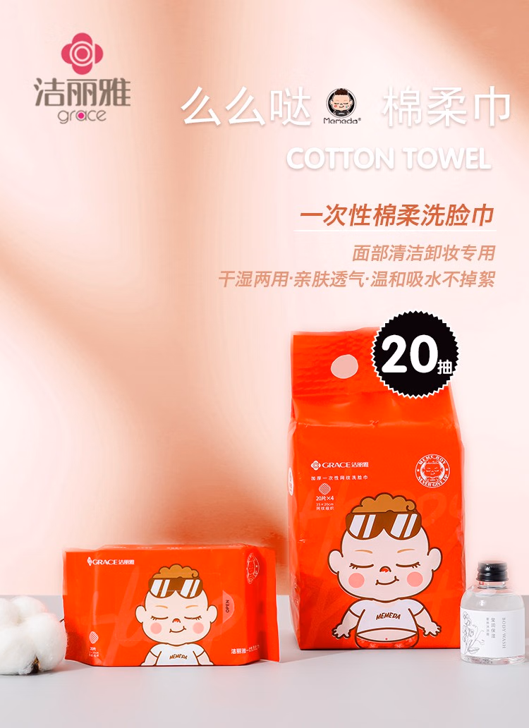 洁丽雅 么么哒棉柔巾20抽*4包MRJ424-4