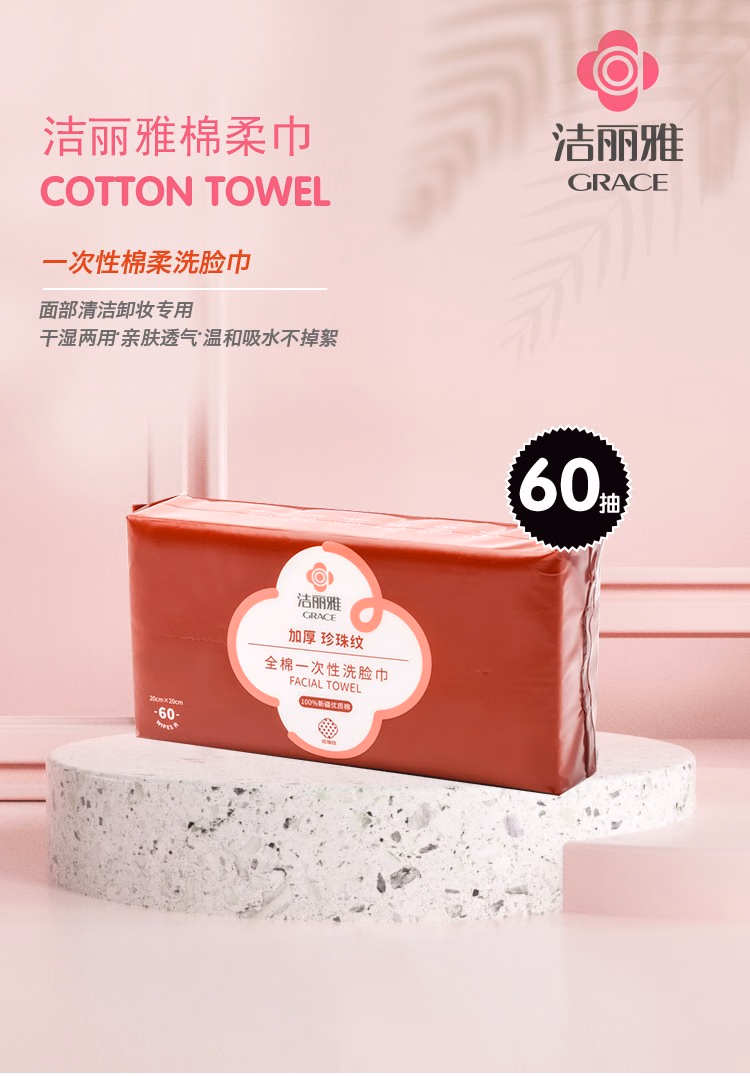 洁丽雅 全棉一次性洗脸巾60抽MRJ426