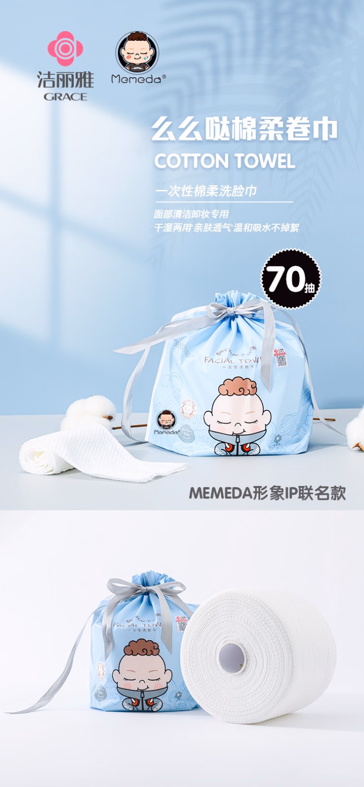 洁丽雅 么么哒棉柔巾70抽/卷MRJ430