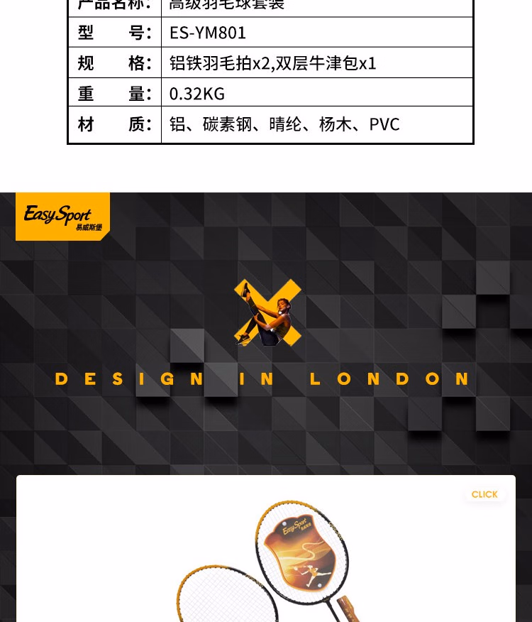 易威斯堡 高级羽毛球套装ES-YM801