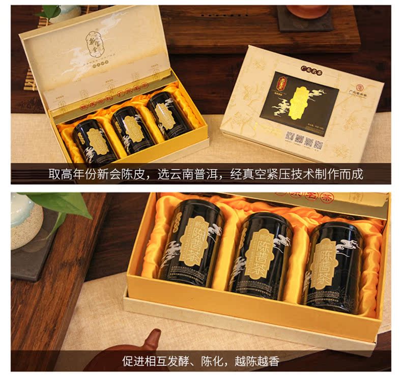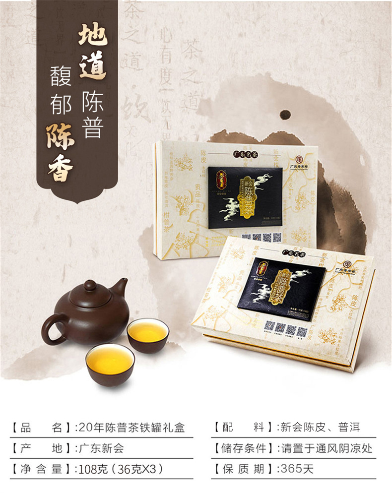 新宝堂二十年陈皮普洱茶铁罐礼盒108g