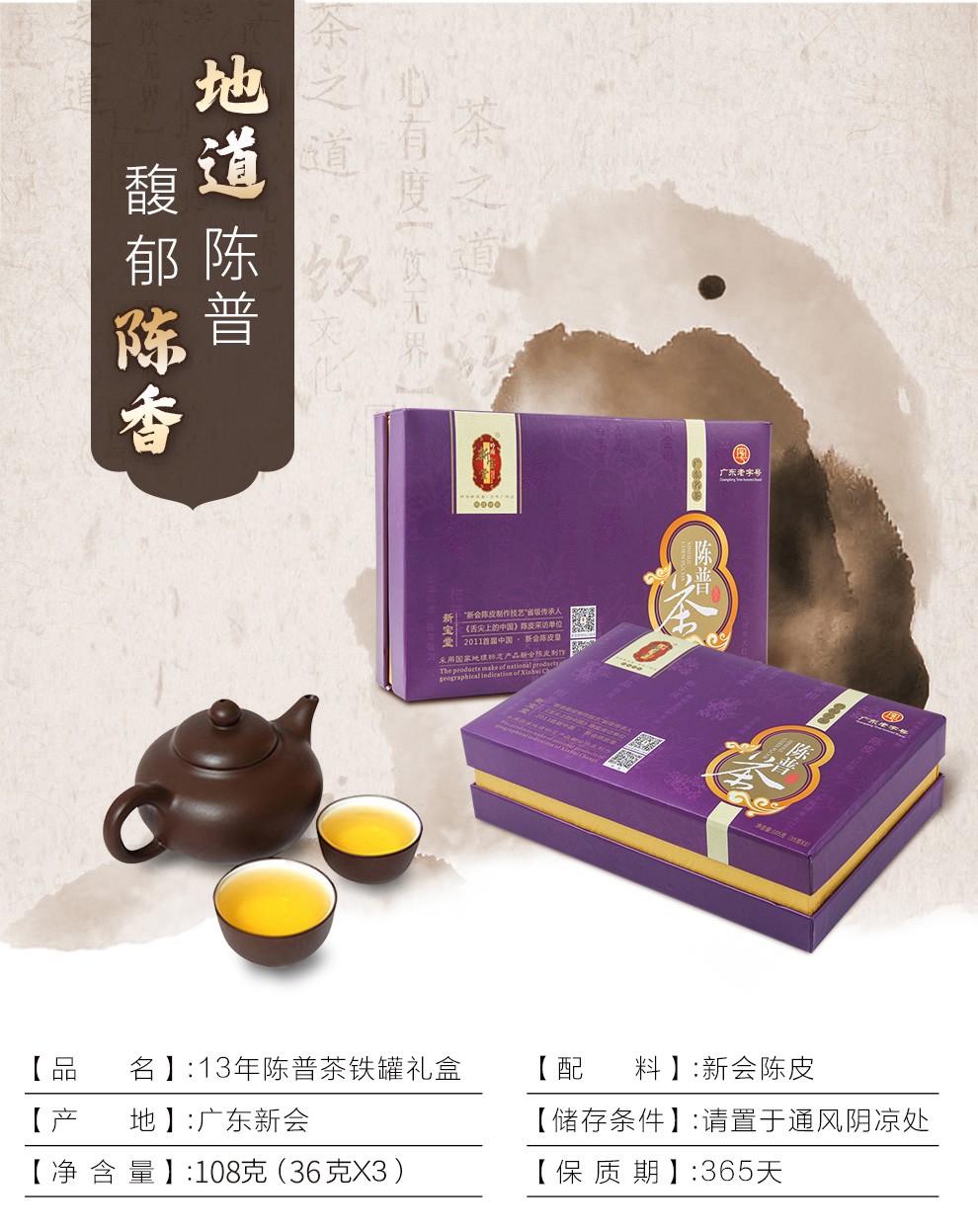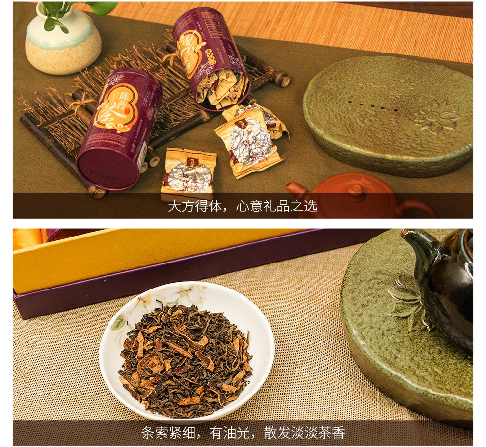 新宝堂十三年陈皮普洱茶铁罐礼108g