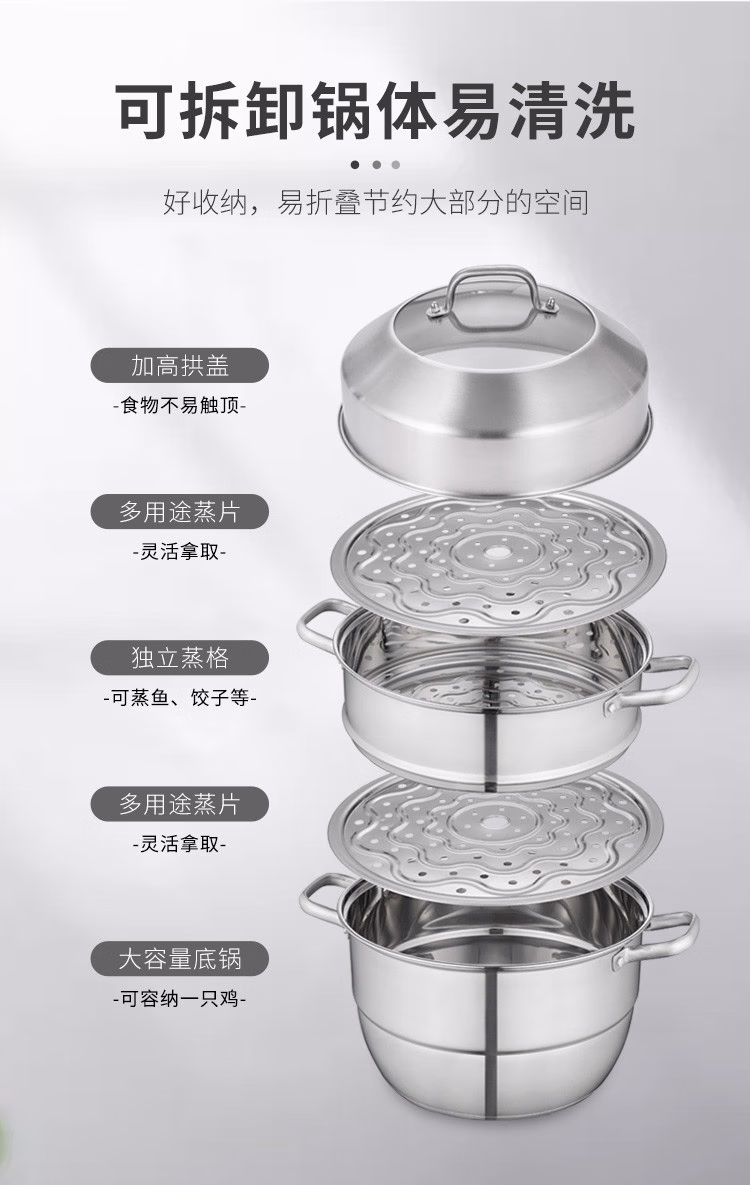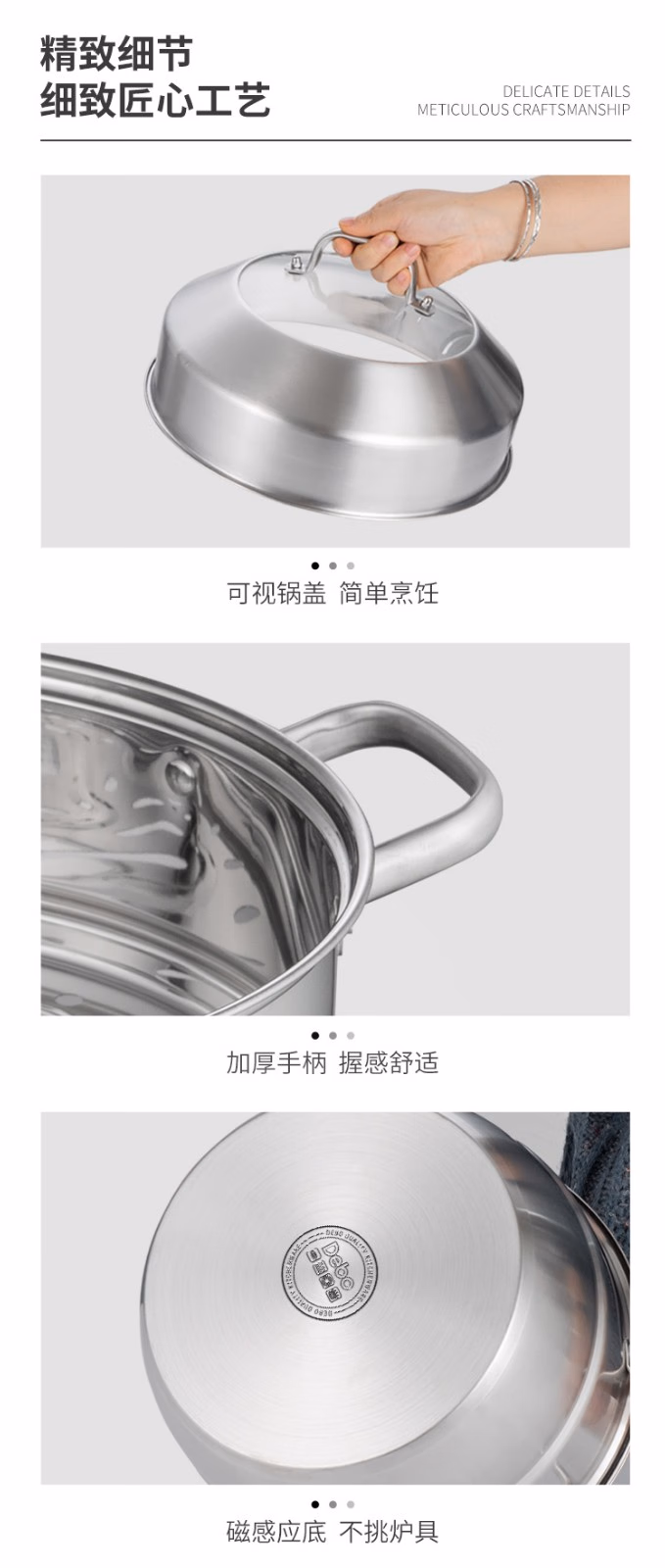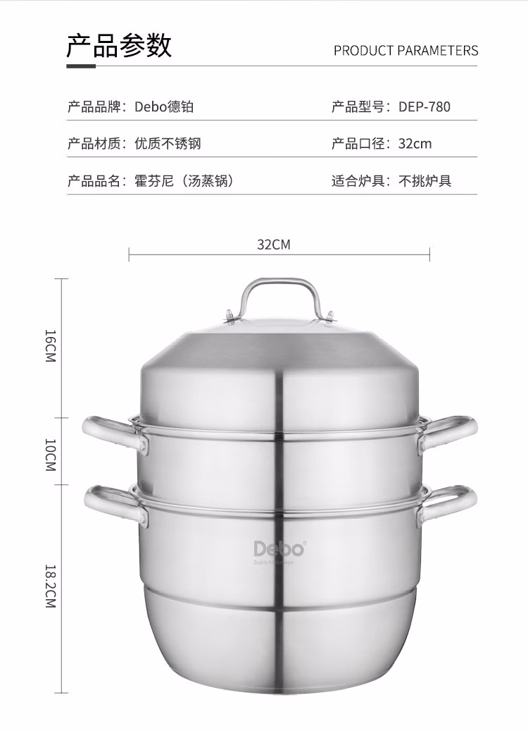 德铂 霍芬尼不锈钢多层复底蒸汤锅32cm DEP-780