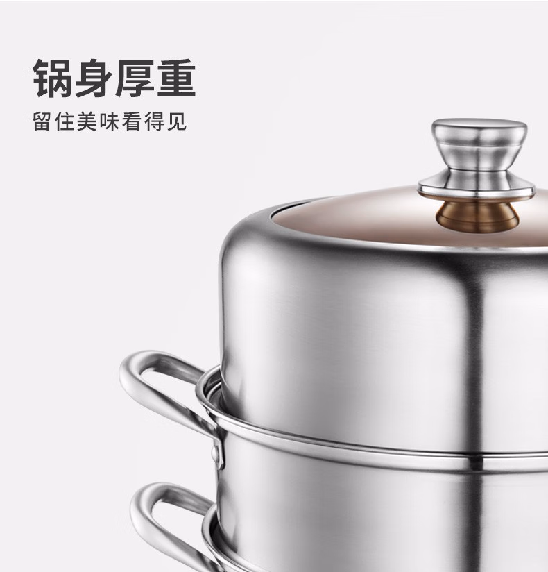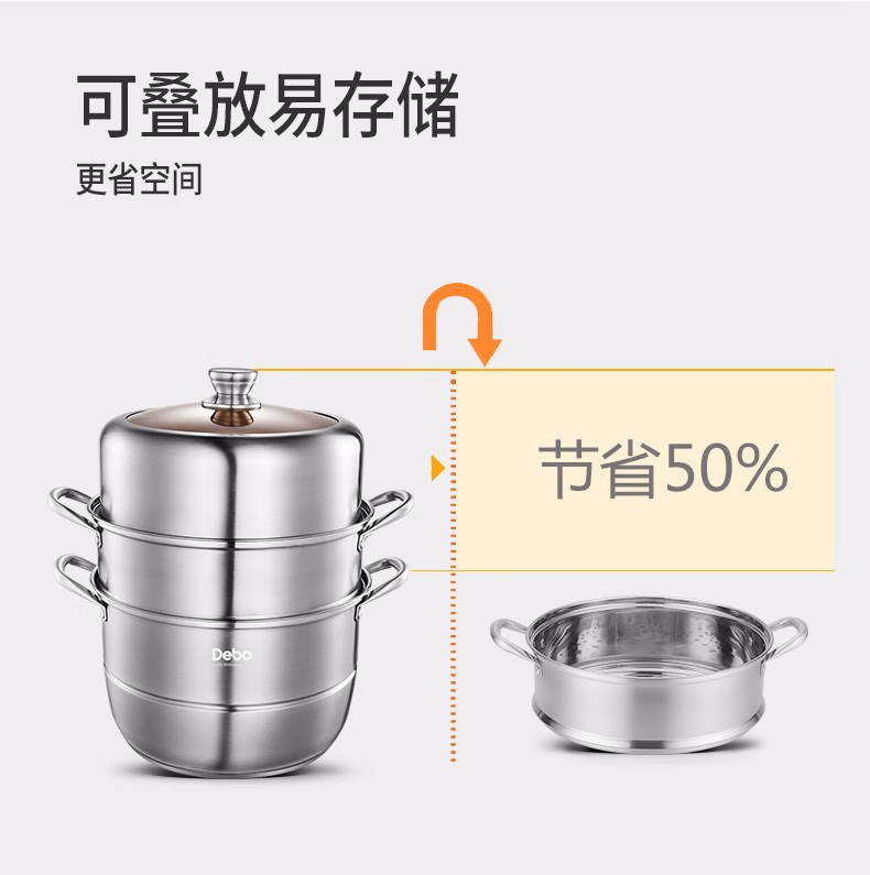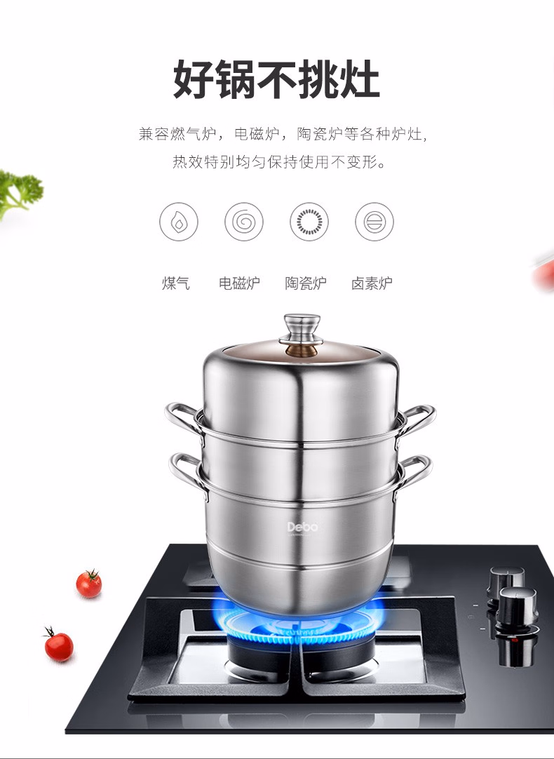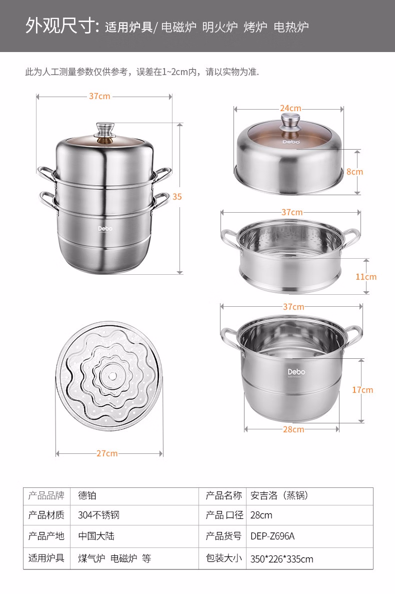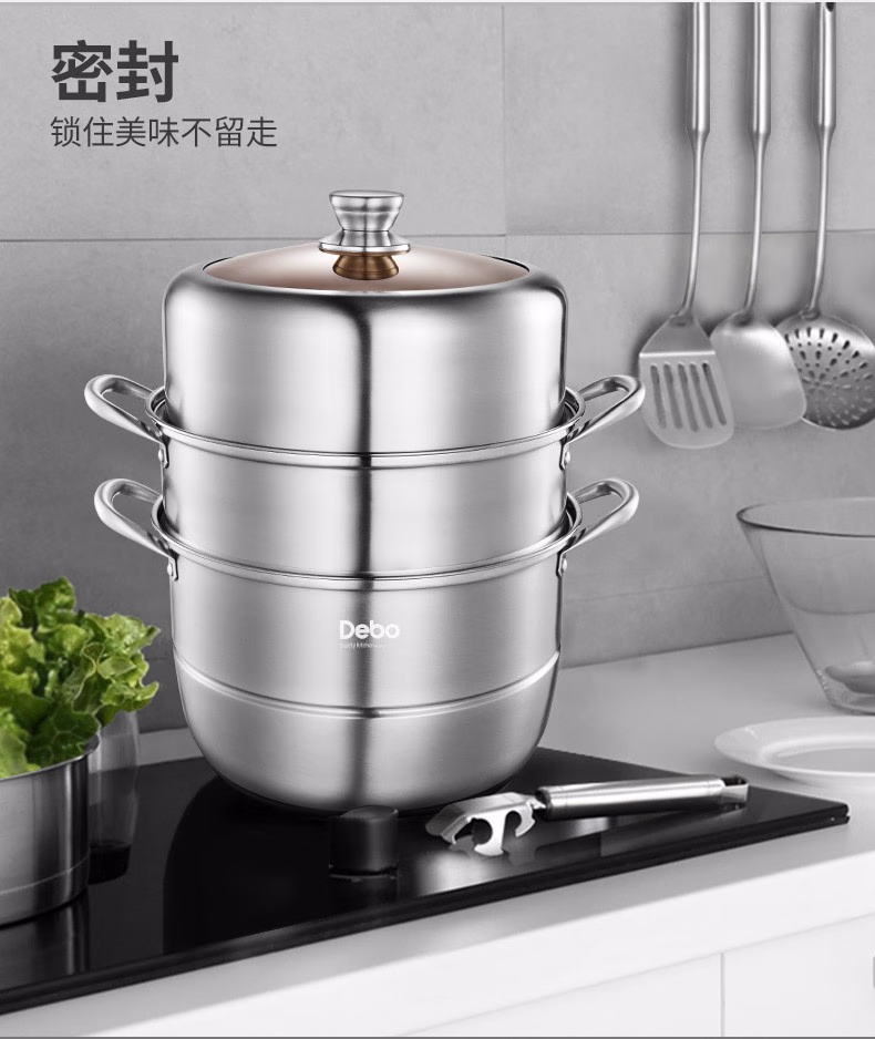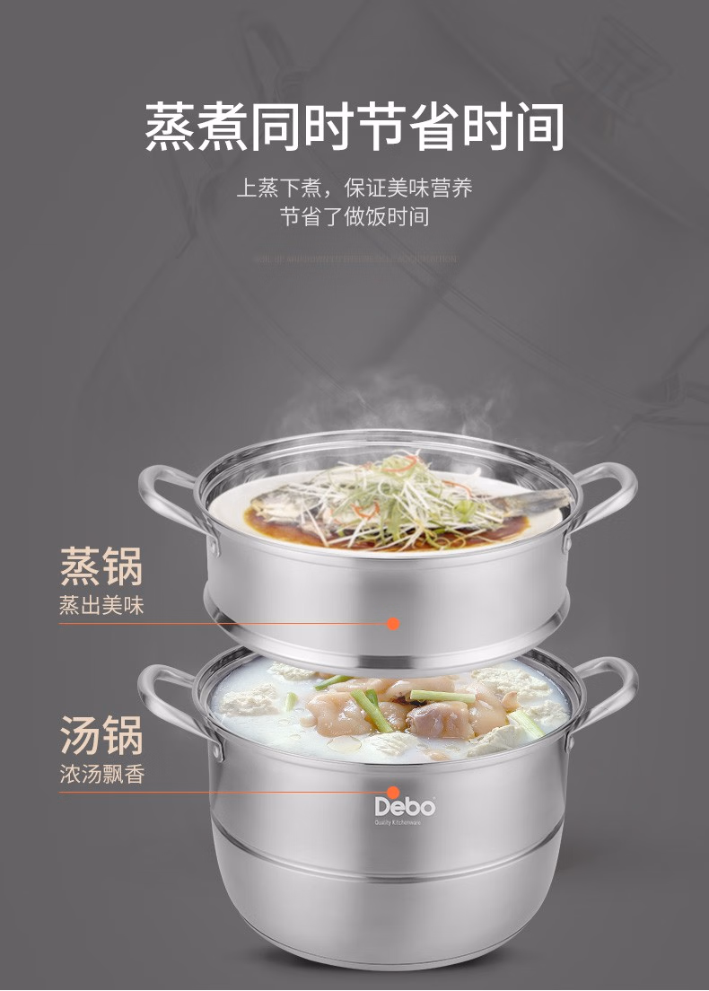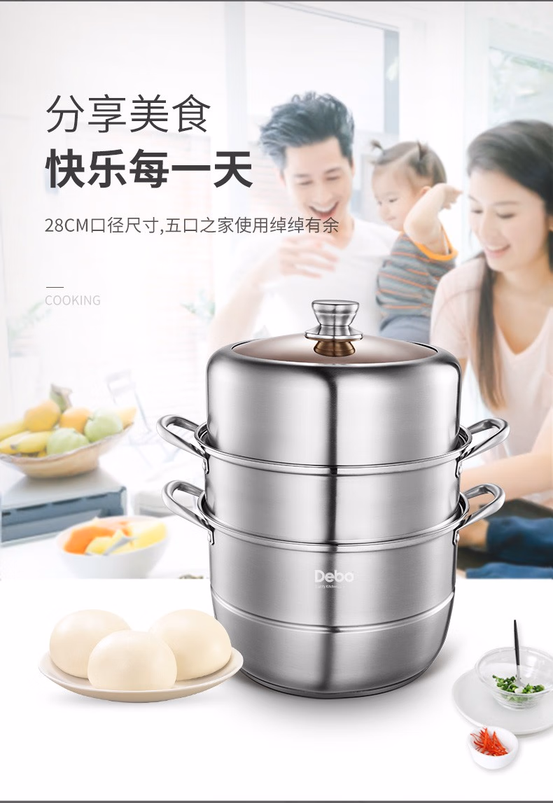 德铂 安吉洛304不锈钢双层复底蒸锅 28cmDEP-696