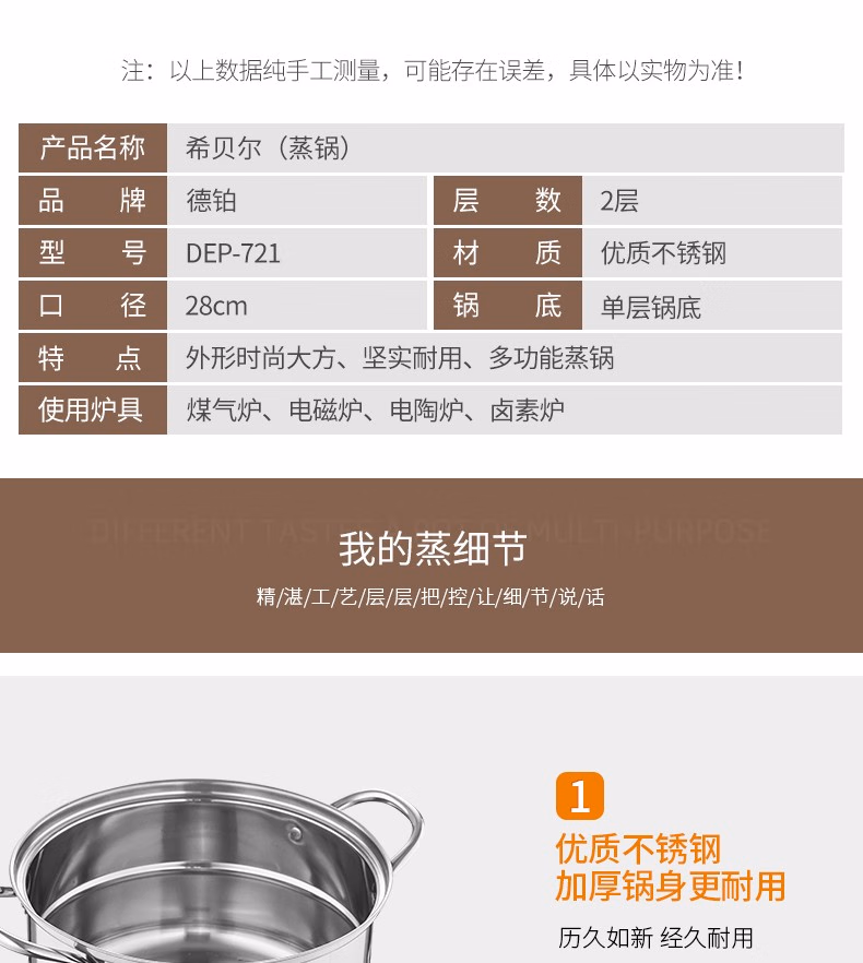 徳铂 希贝尔双层不锈钢蒸锅28cm DEP-721