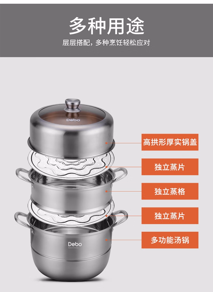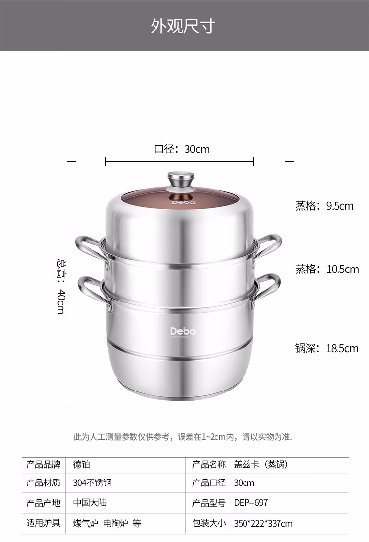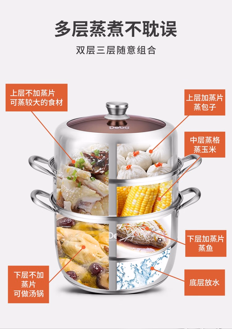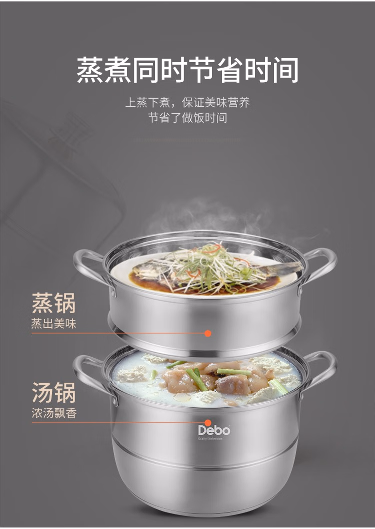 德铂 盖兹卡双层304不锈钢汤蒸锅DEP-697