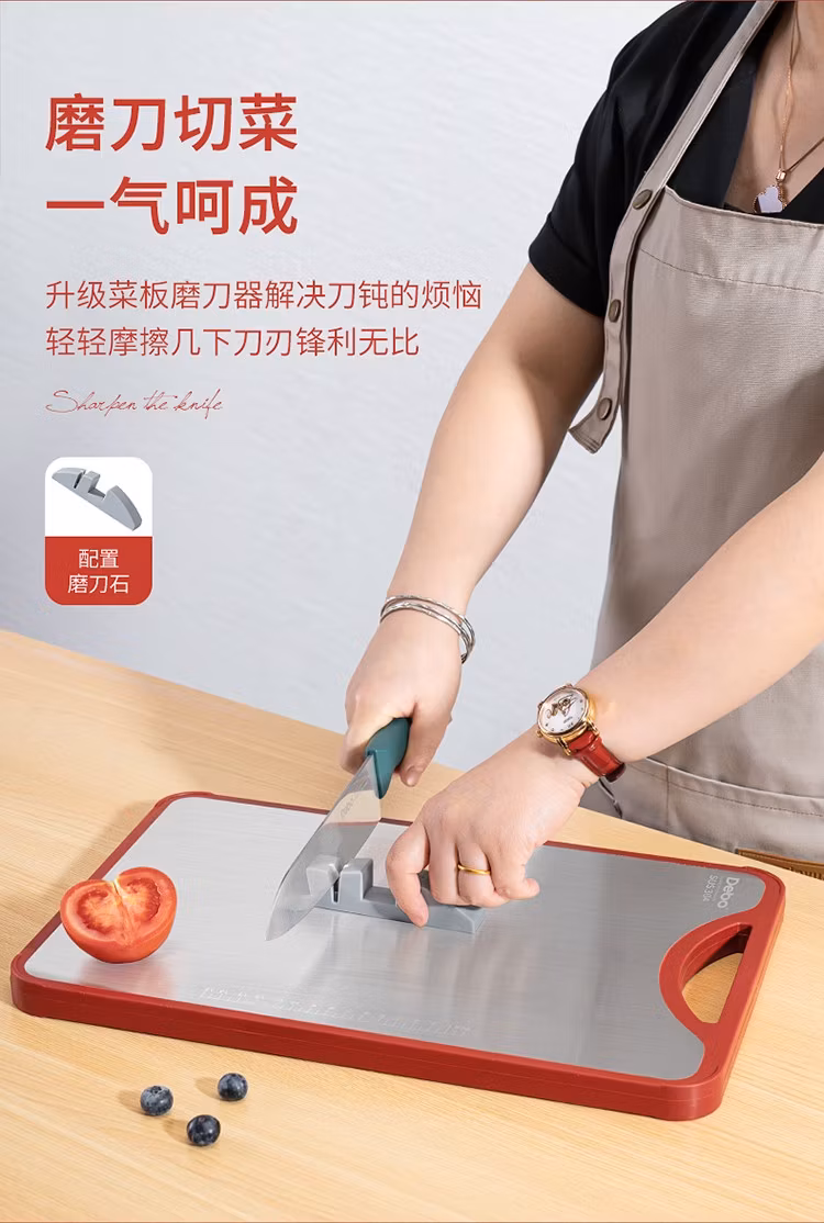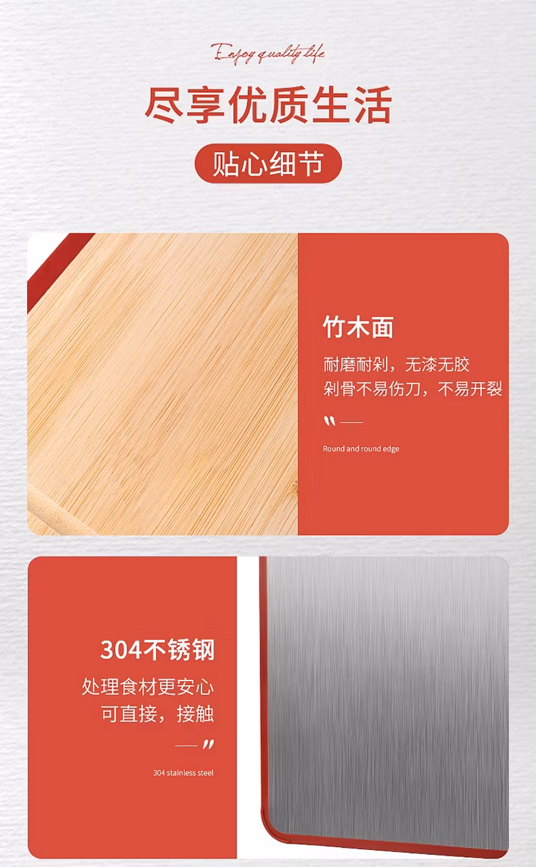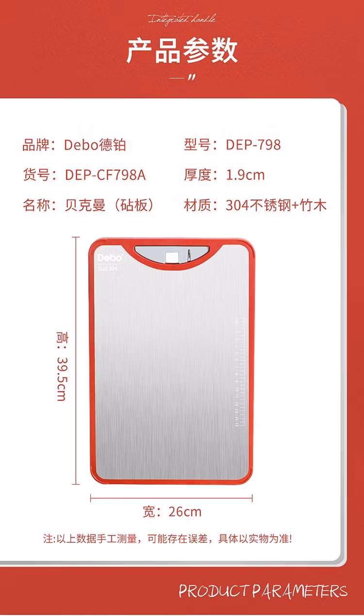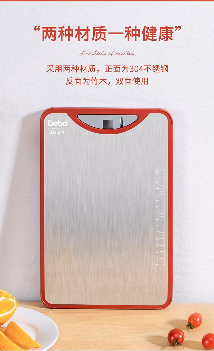 德铂debo 贝克曼304不锈钢+竹木双面粘板菜板DEP-798