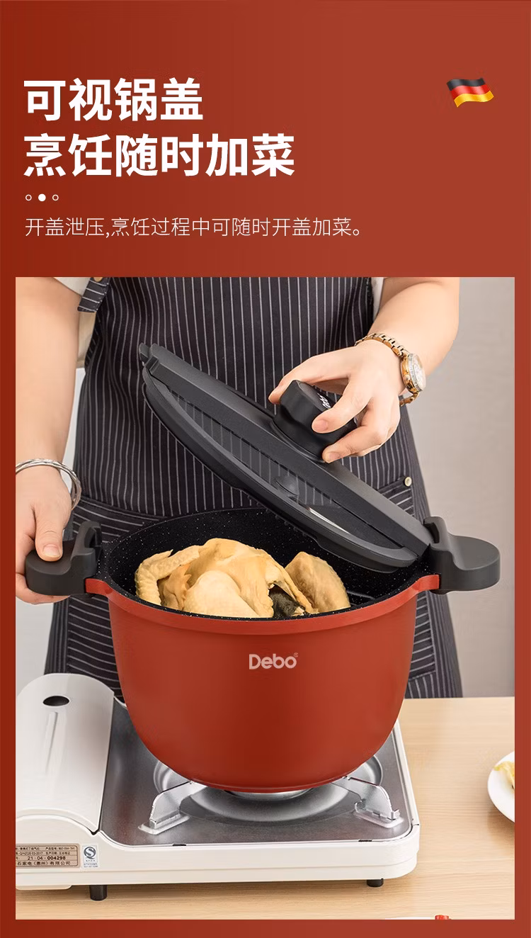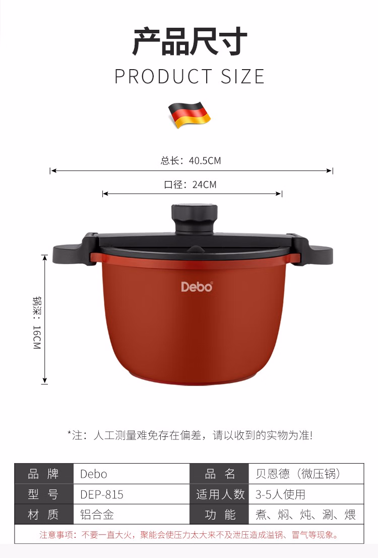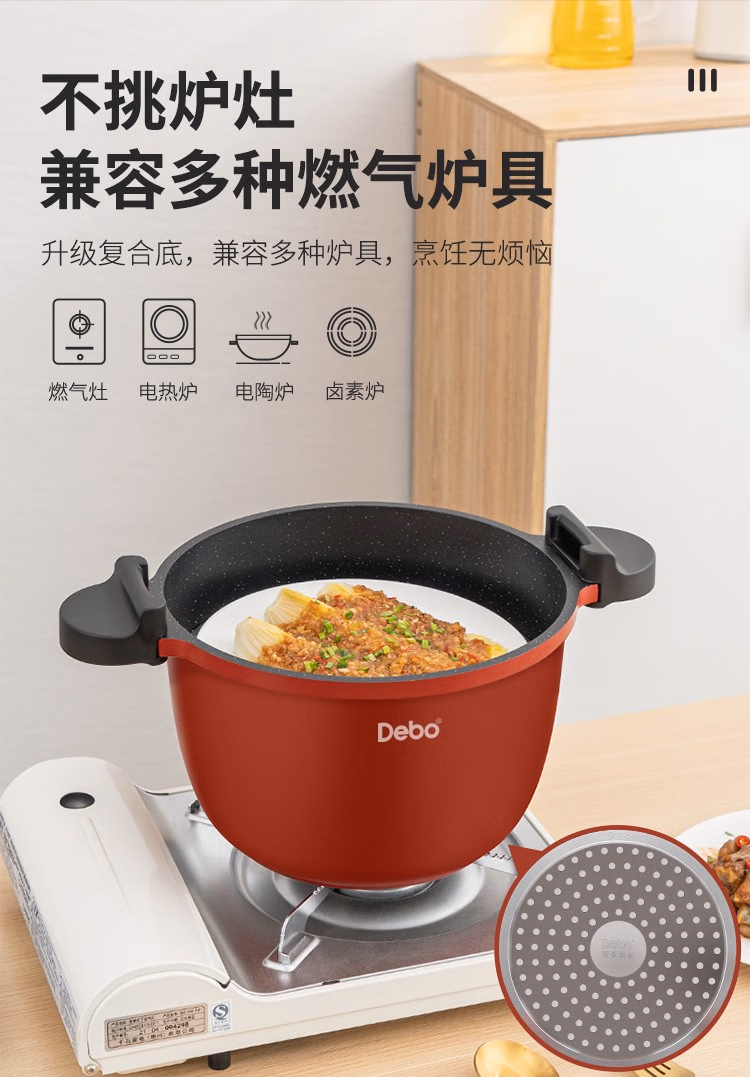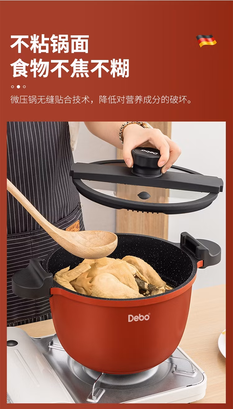 德铂 贝恩德汤锅微压不粘炖汤锅 红色DEP-815