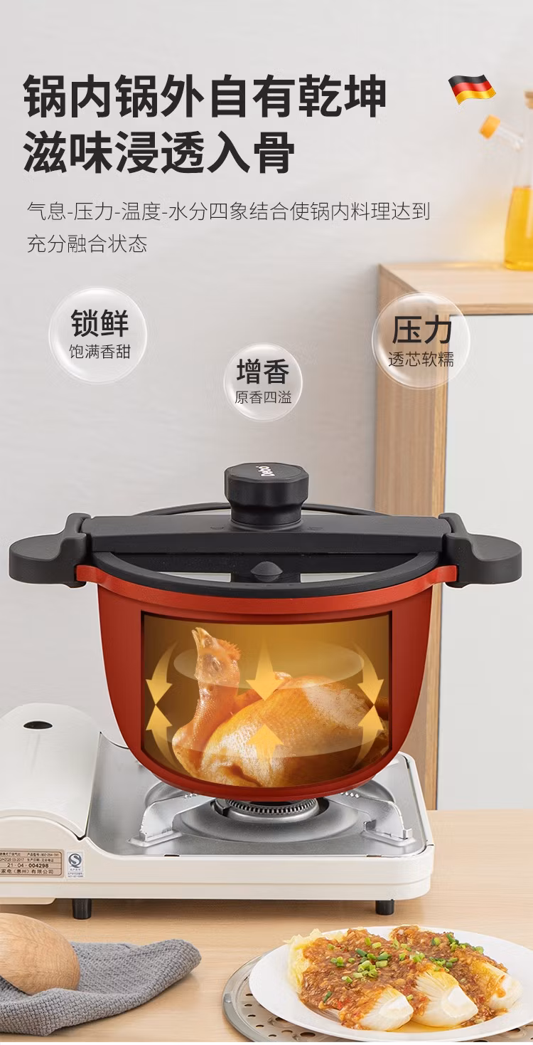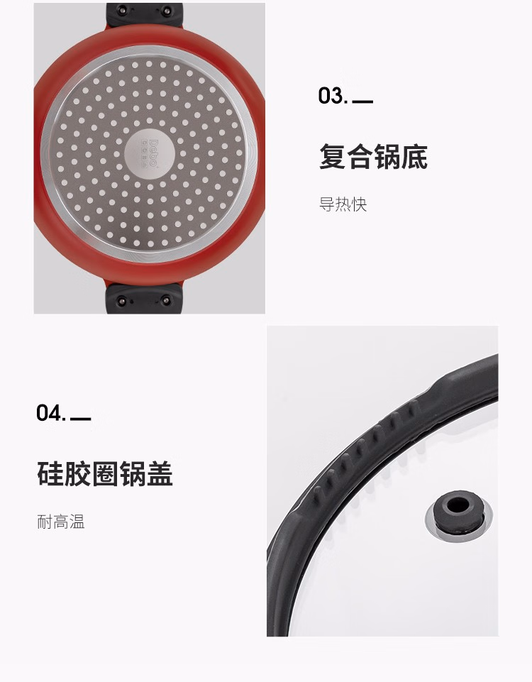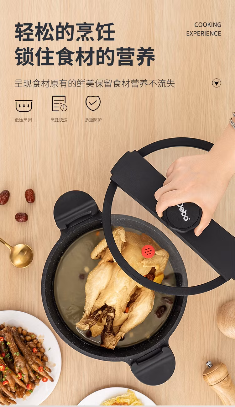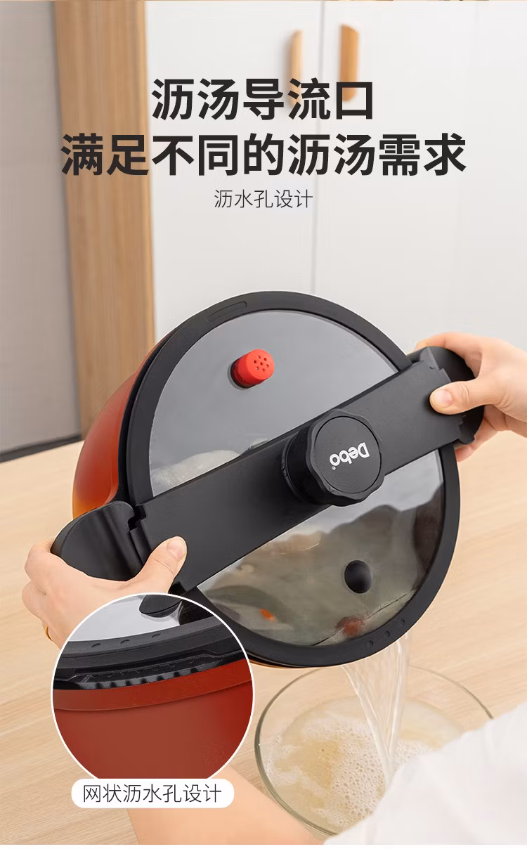 德铂 贝恩德汤锅微压不粘炖汤锅 红色DEP-815