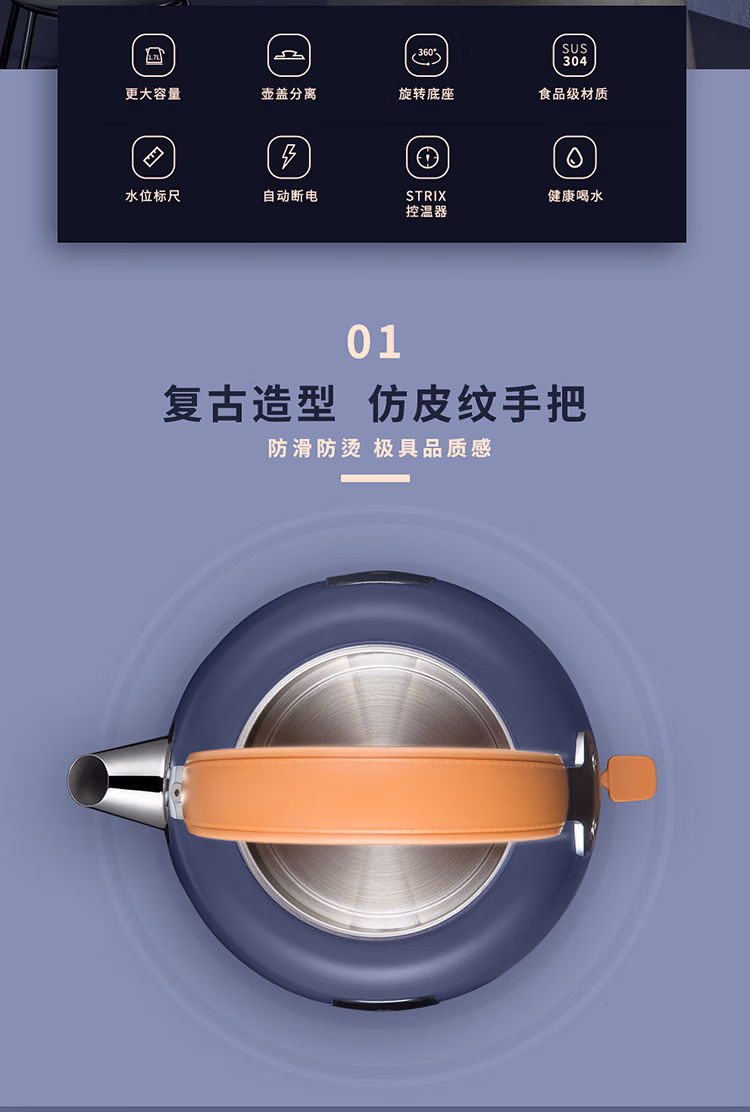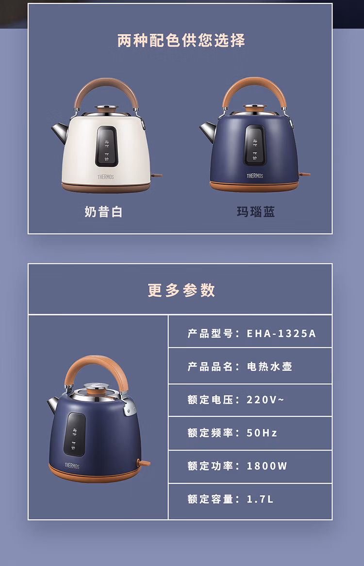 膳魔师 电热水壶 1.7L EHA-1325A 玛瑙蓝