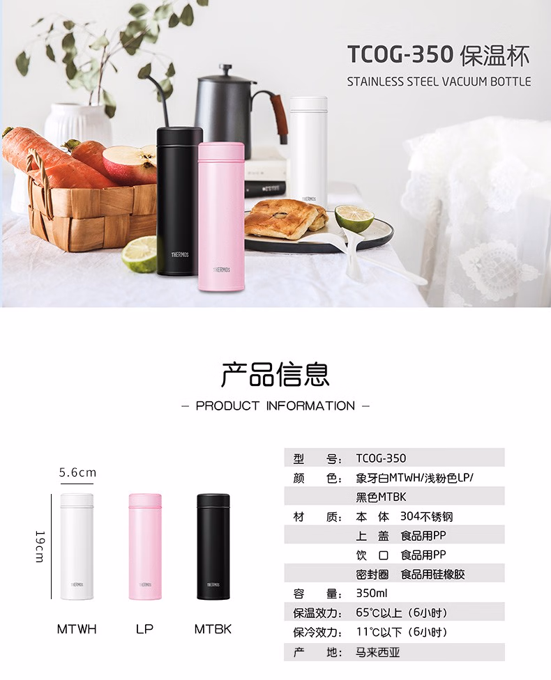 膳魔师 时尚保温杯TCOG-350 粉色