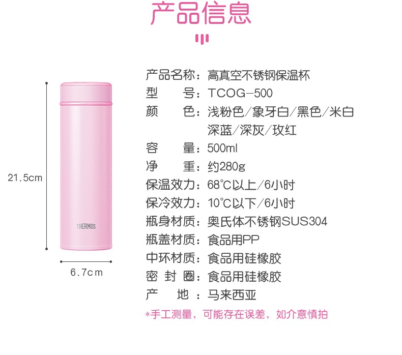 膳魔师 时尚保温杯TCOG-500 颜色随机