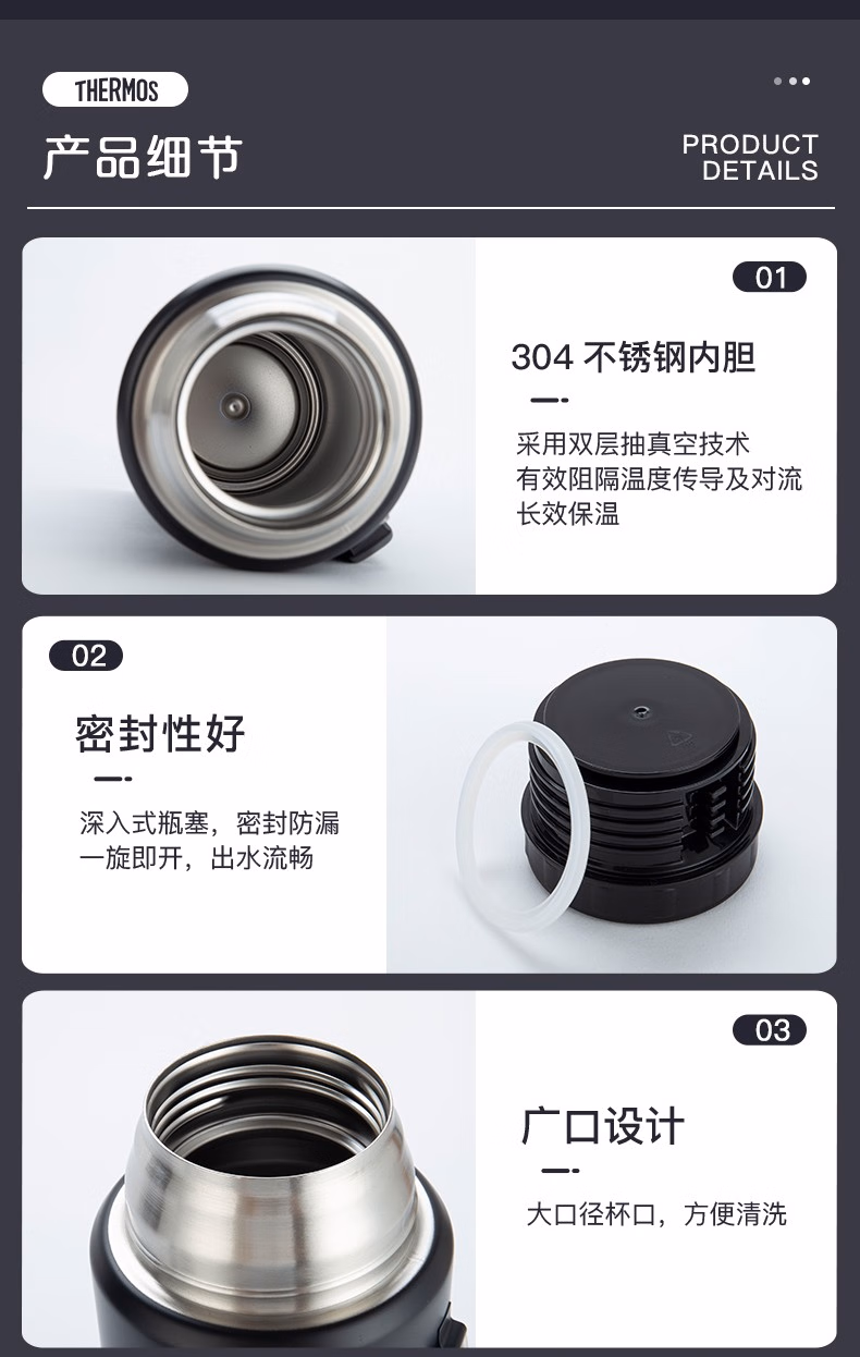膳魔师 高真空不锈钢保温壶SK-2010 黑色