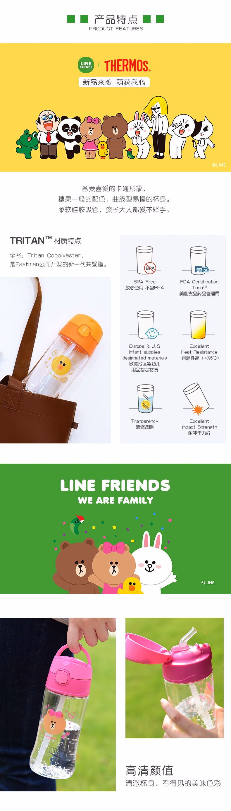 膳魔师 Tritan吸管杯TCSQ-450 KT 猫