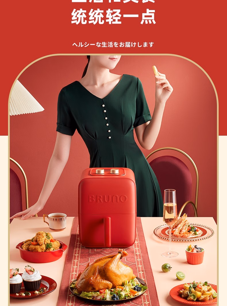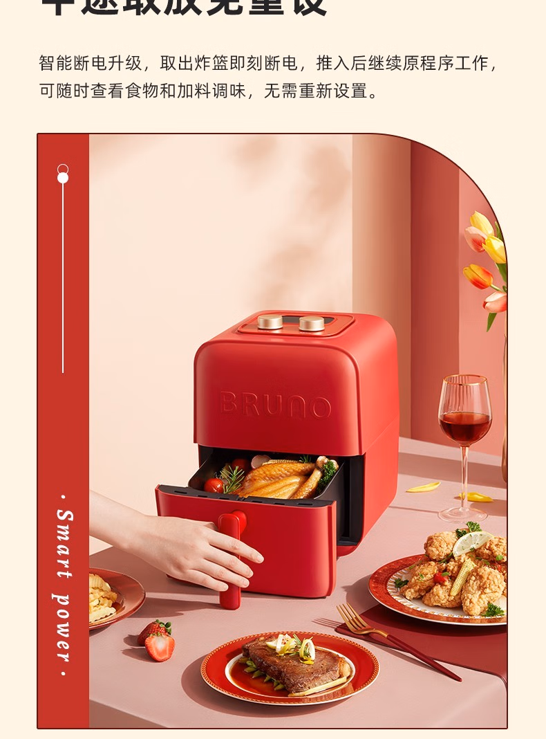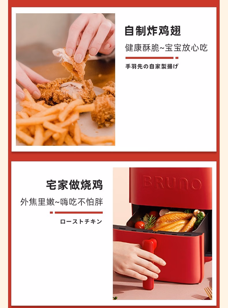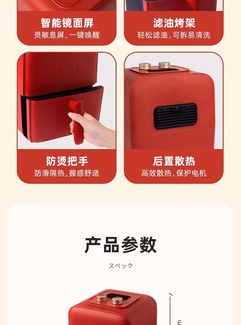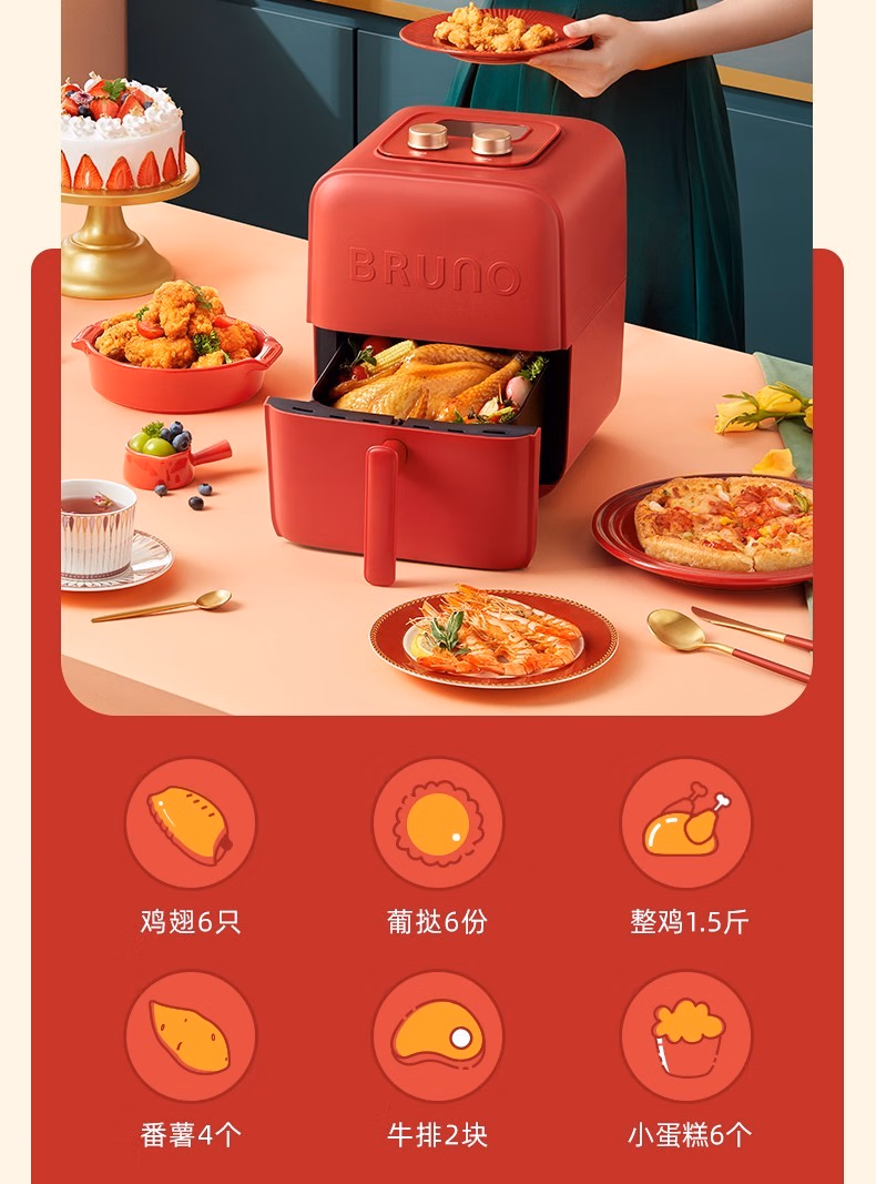 博鲁诺BRUNO新款空气炸锅-电子式-红色BZK-KZ02 -RD