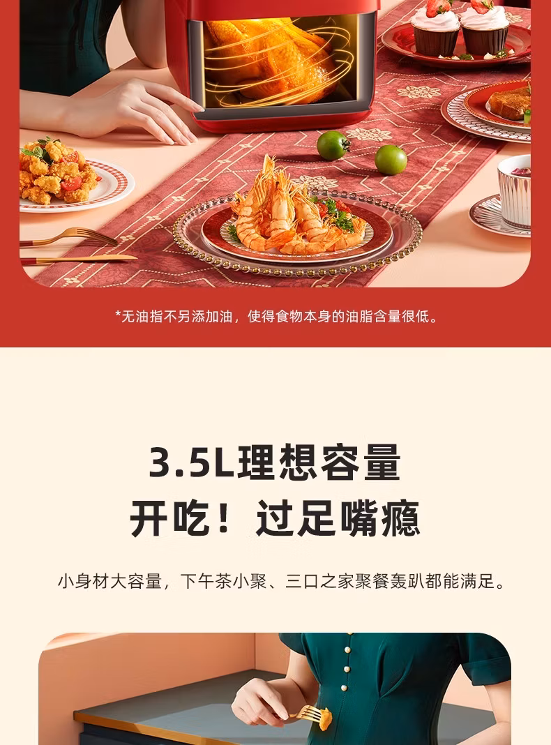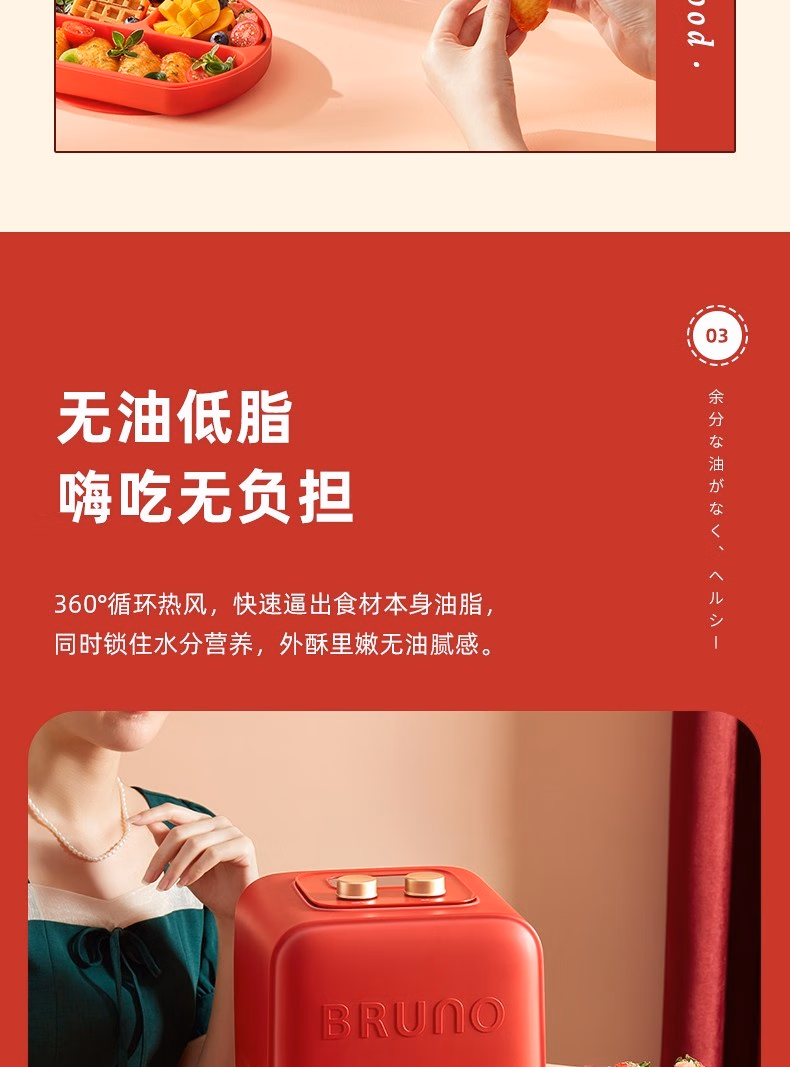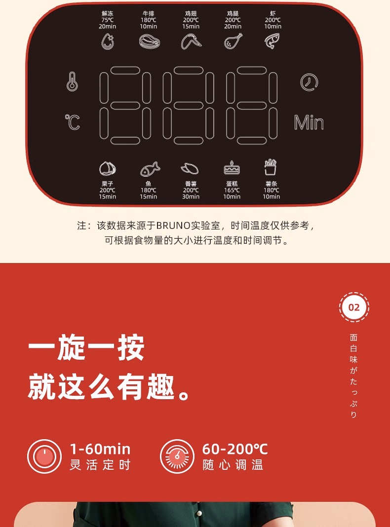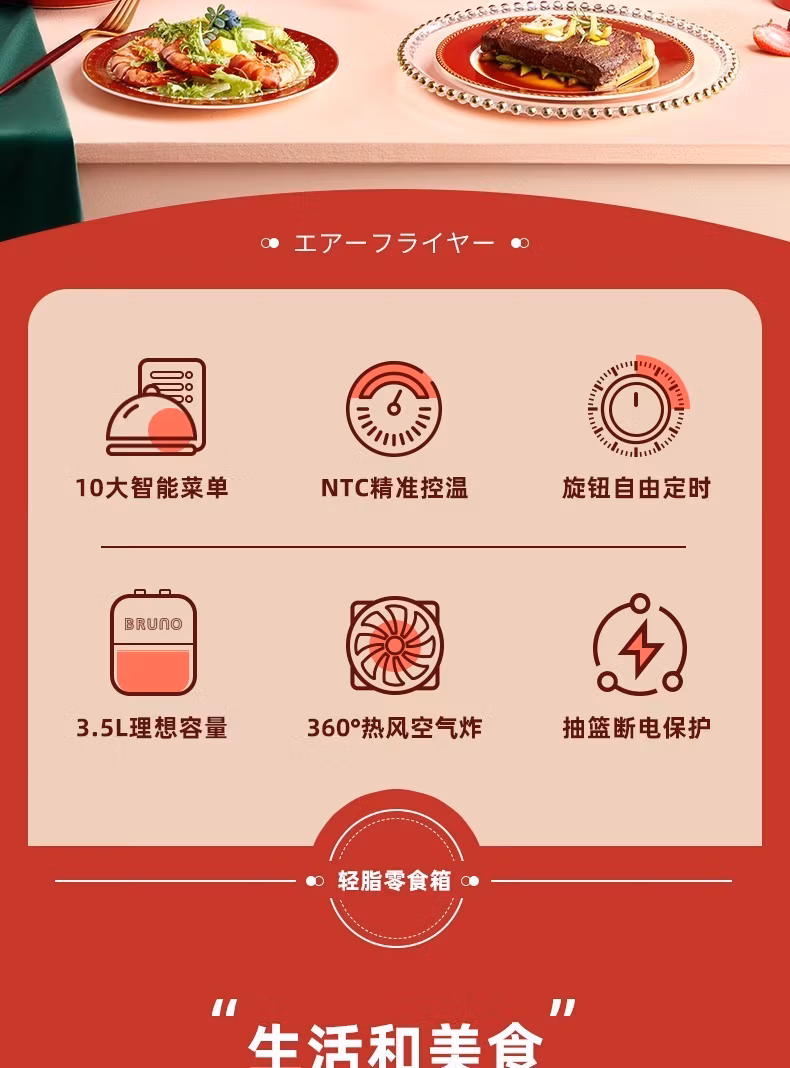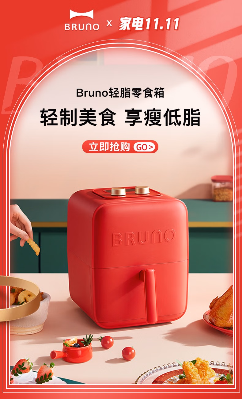 博鲁诺BRUNO新款空气炸锅-电子式-红色BZK-KZ02 -RD