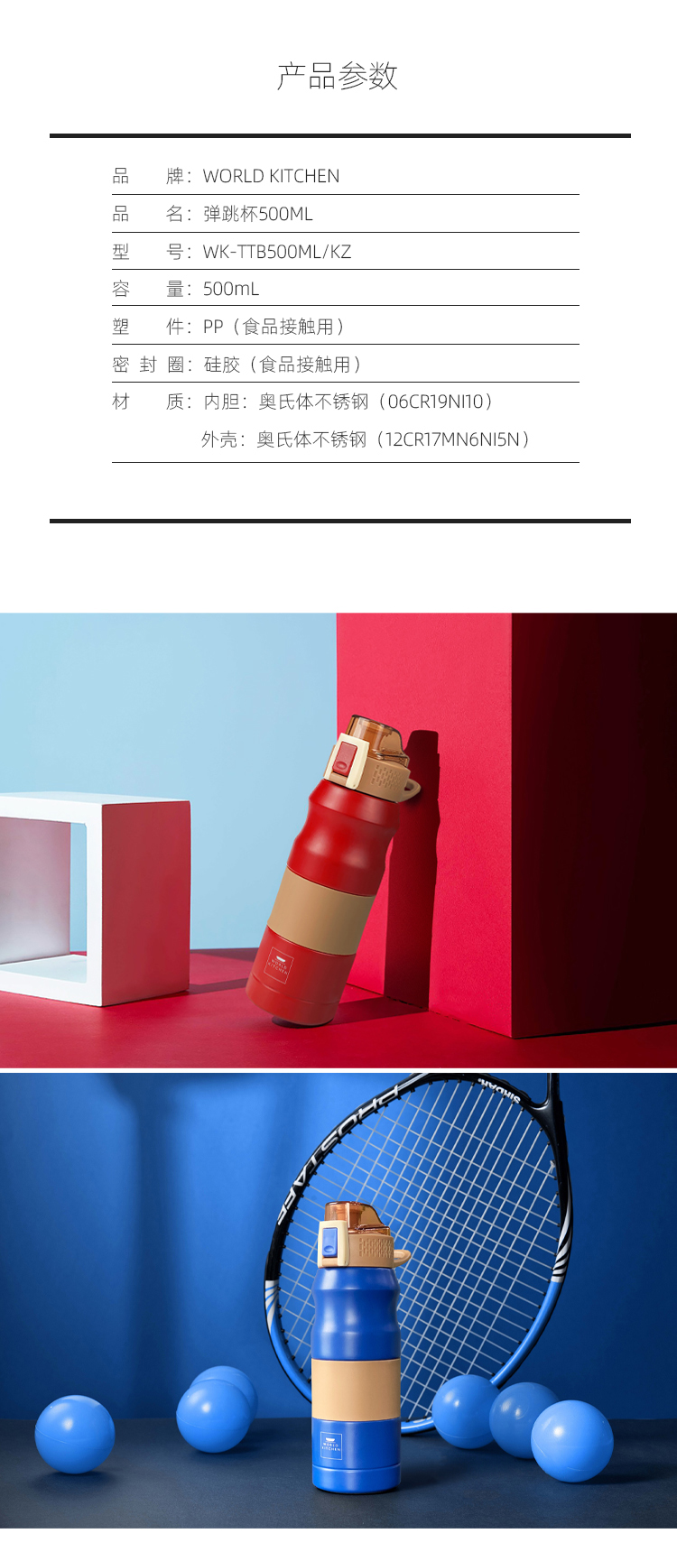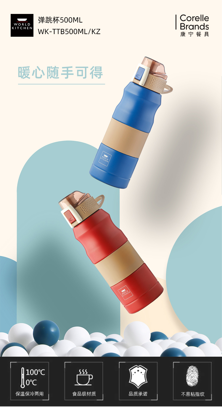 康宁WORLD KITCHEN弹跳杯500ml-蓝 WK-TTB500ML/KZ/BL