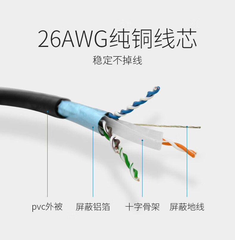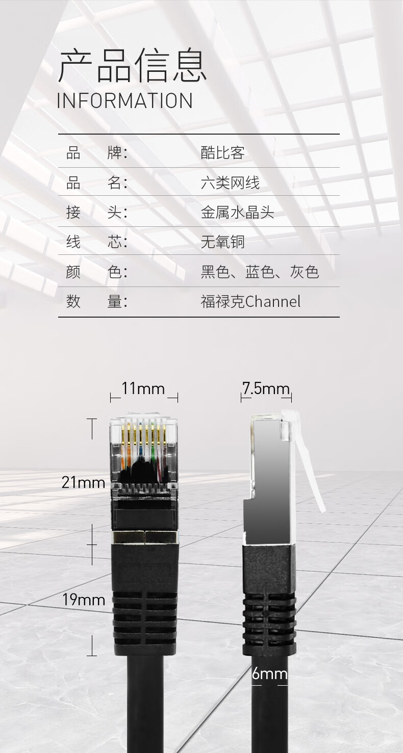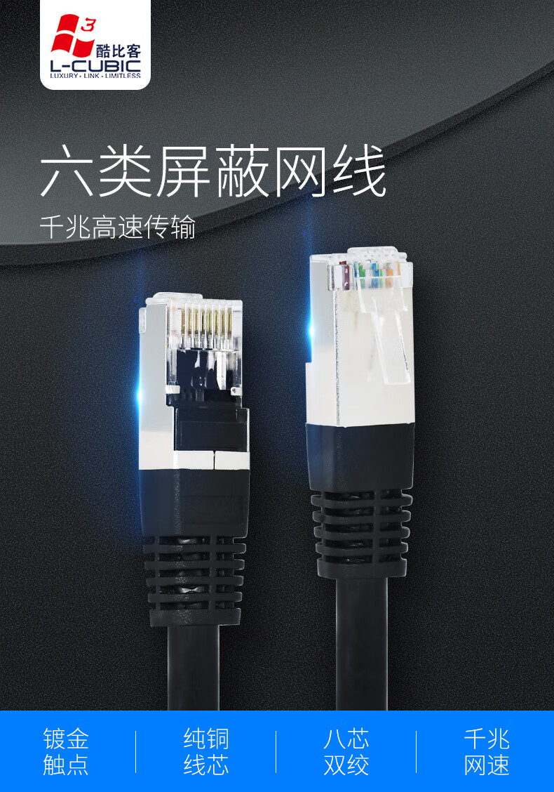 酷比客/L-CUBIC cat6 无氧铜纯铜屏蔽版八芯双交成品家用商用高速六类网络跳线千兆网线跳线 屏蔽版黑色 3米