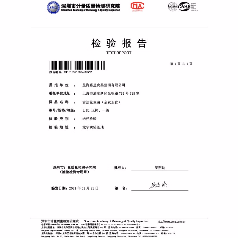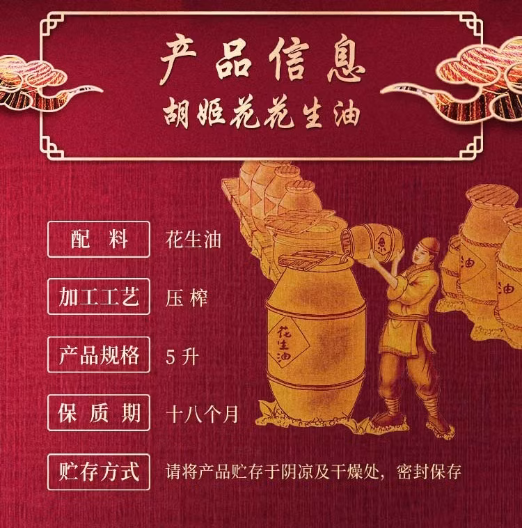 胡姬花 金衣玉食花生油5L