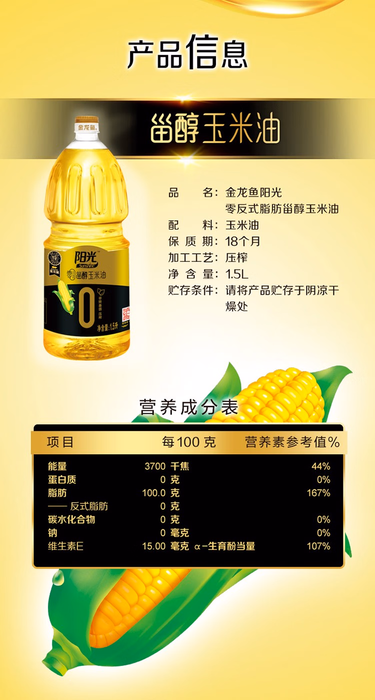 金龙鱼 阳光零反式脂肪甾醇玉米油1.5L