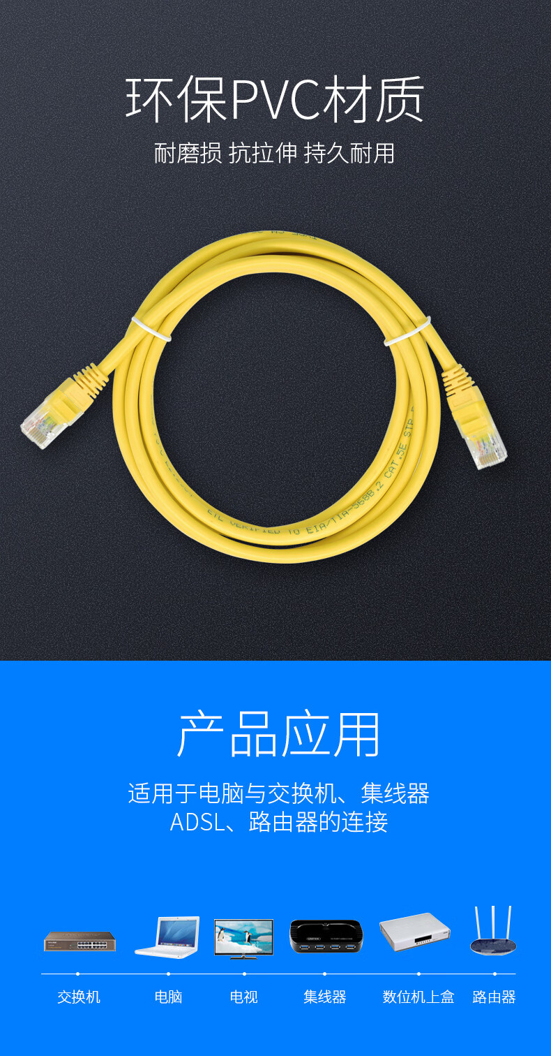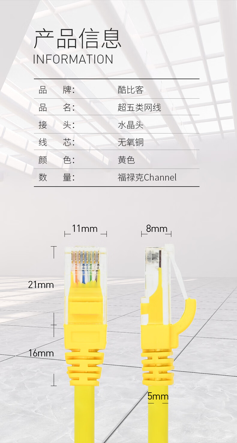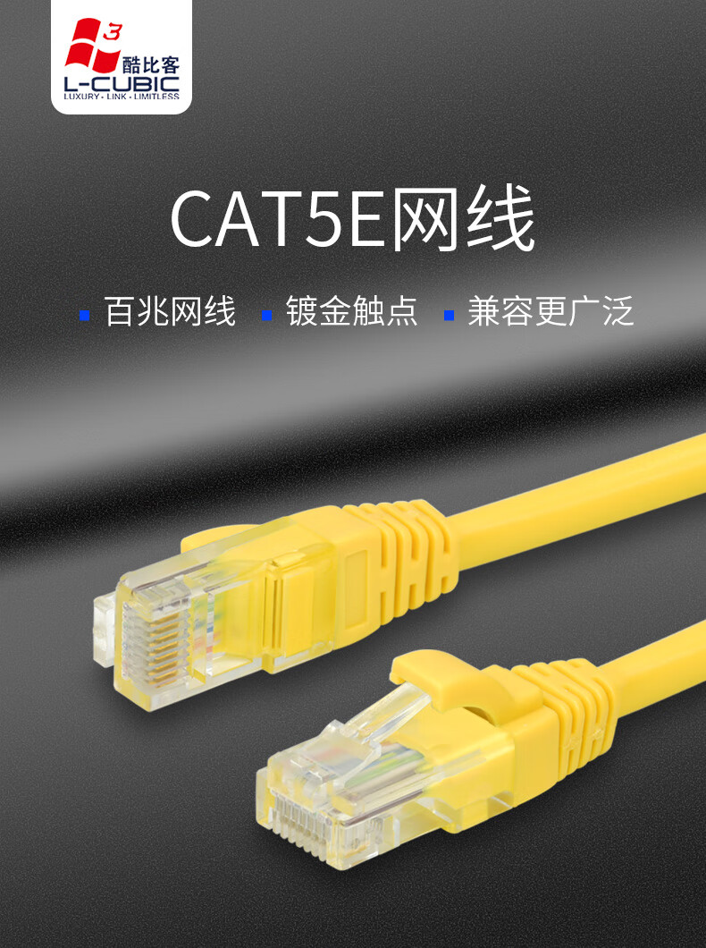 酷比客(L-CUBIC) 超五类网线纯铜高速CAT5e类百兆网络连接线电脑网络跳线 黄色 5米