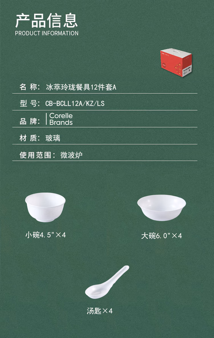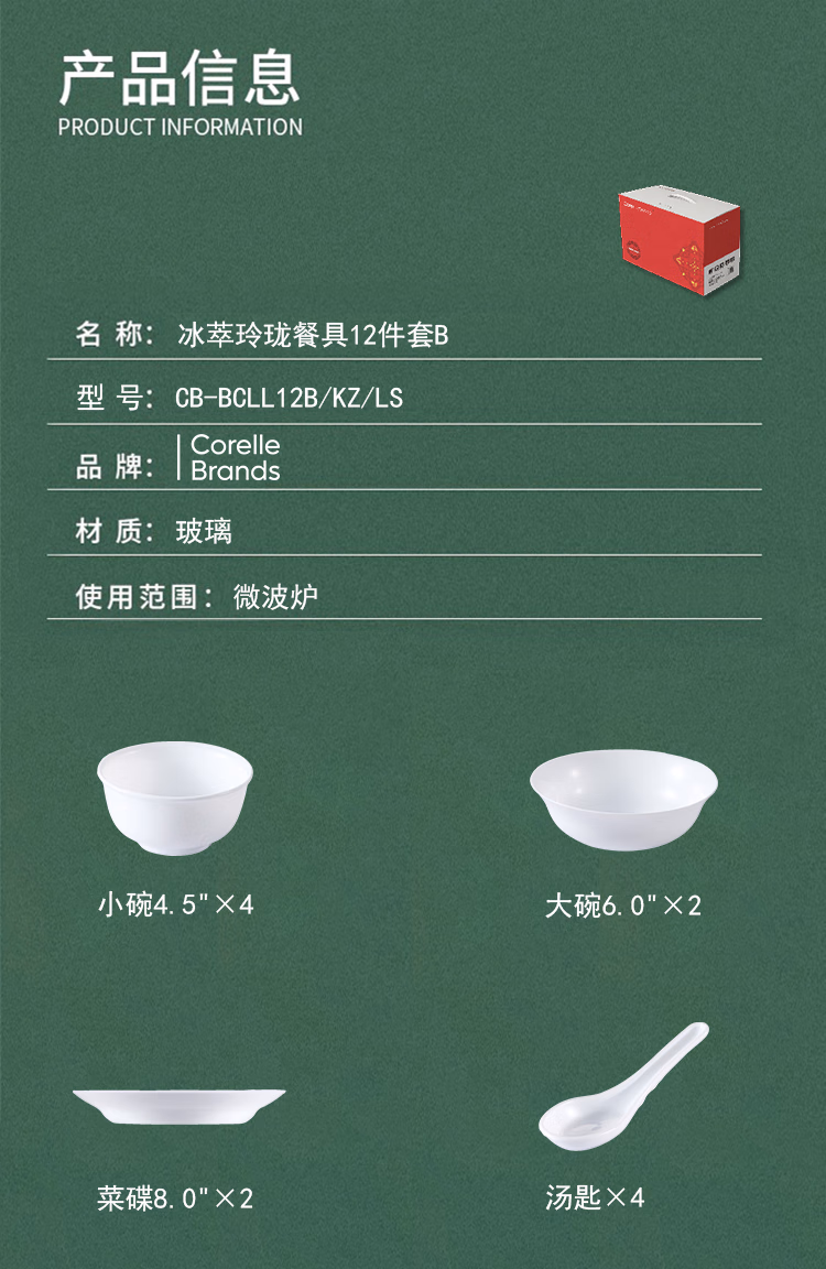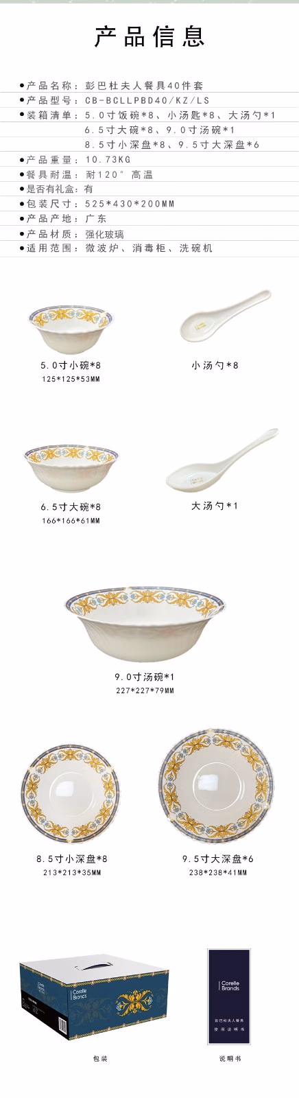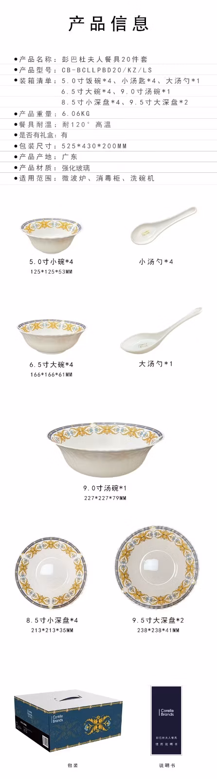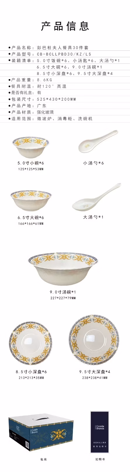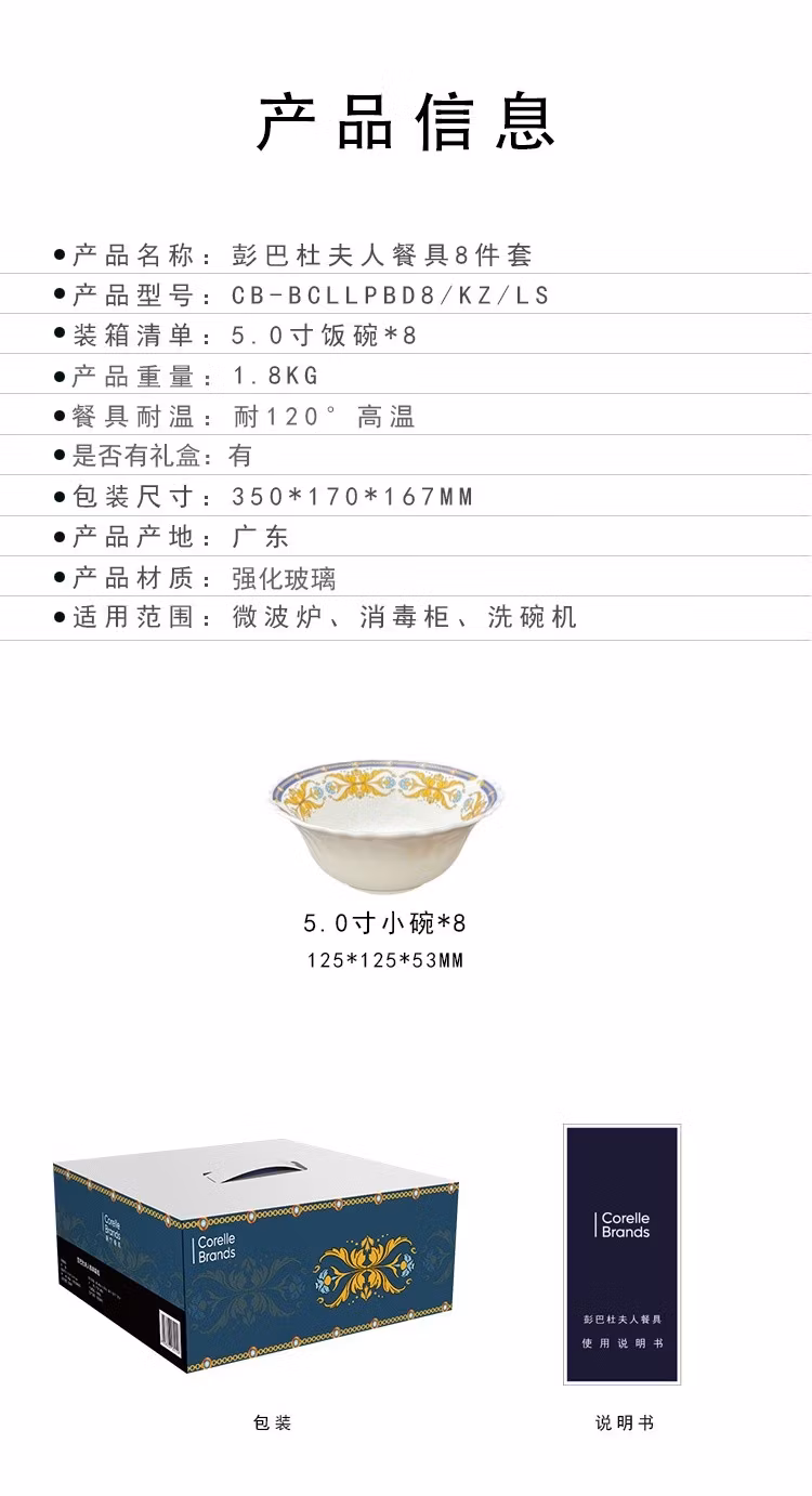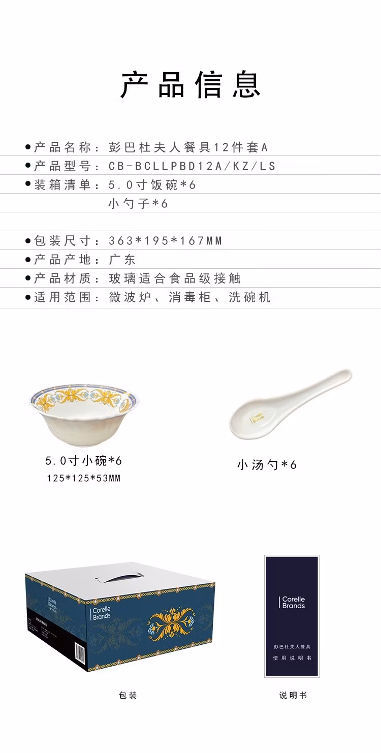 康宁餐具JMK康宁冰萃玲珑 彭巴杜夫人餐具6件套 CB-BPBD6/KZ/LS