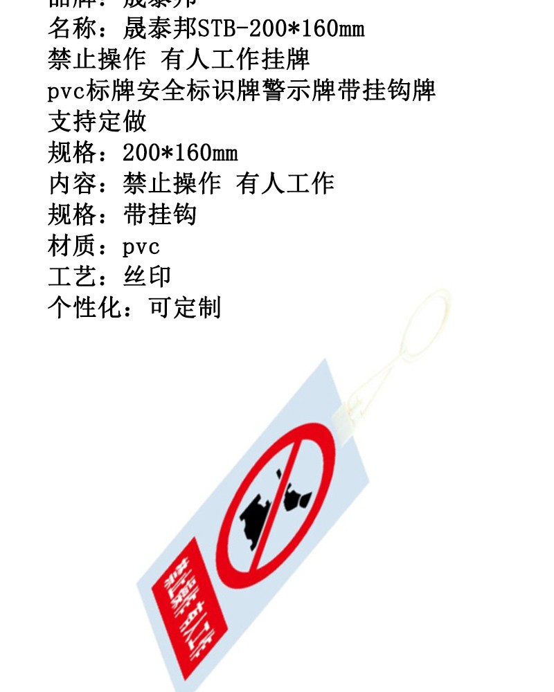 晟泰邦STB-200*160mm 禁止操作 有人工作挂牌 pvc标牌安全标识牌警示牌带挂钩牌支持定做 单位:块