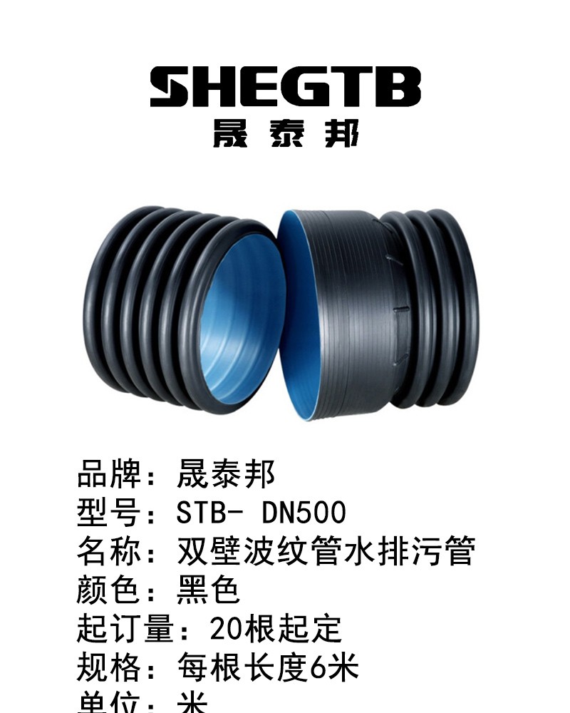 晟泰邦STB-DN200双壁波纹管水排污管(20根起定,下单前请咨询)每根长度6米 单位:米